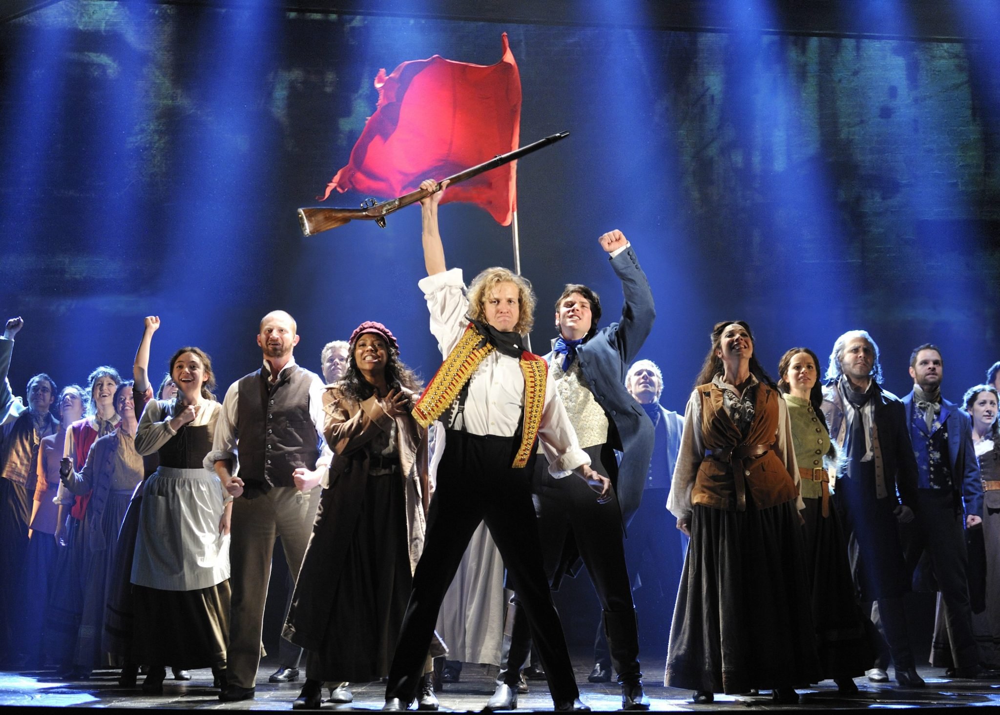 their leader Enjolras (Jason Forbach) exhorts them to action in “The People’s Song (Do You Hear the People Sing)” and
