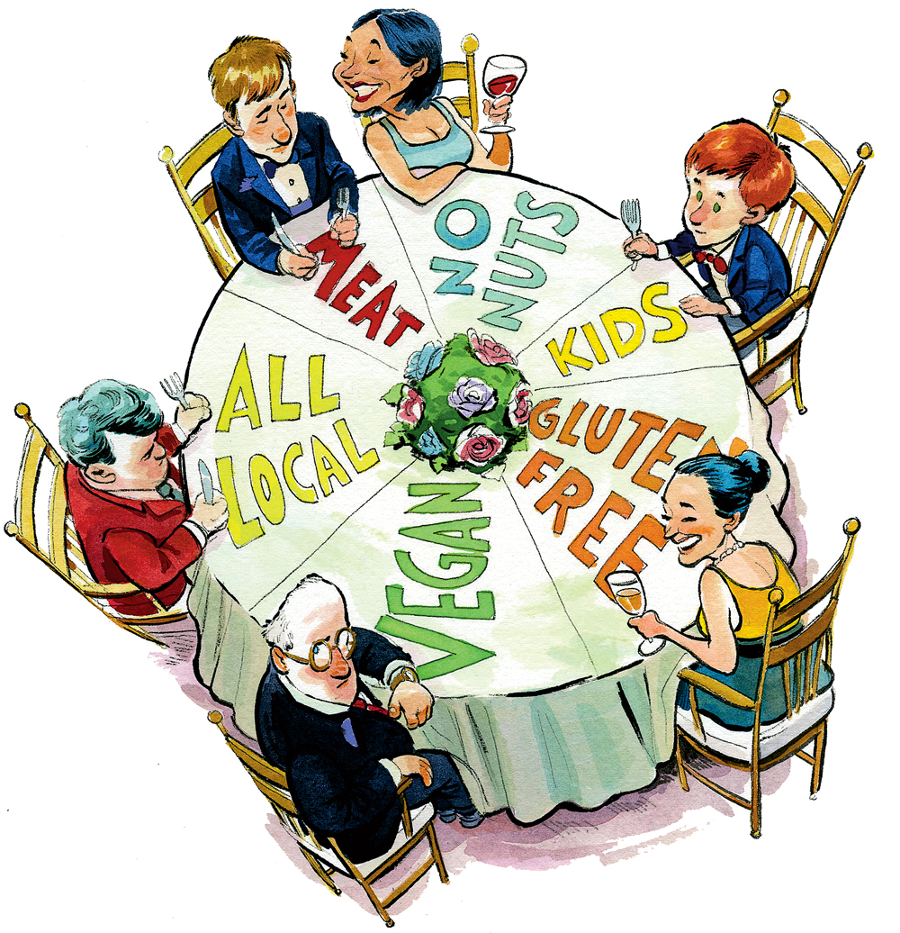 The groom is a foodie who wants the menu to be locally sourced. The mother of the bride has gone vegetarian. And her mother insists that it isn’t a wedding without those little pastry-wrapped hot dogs.