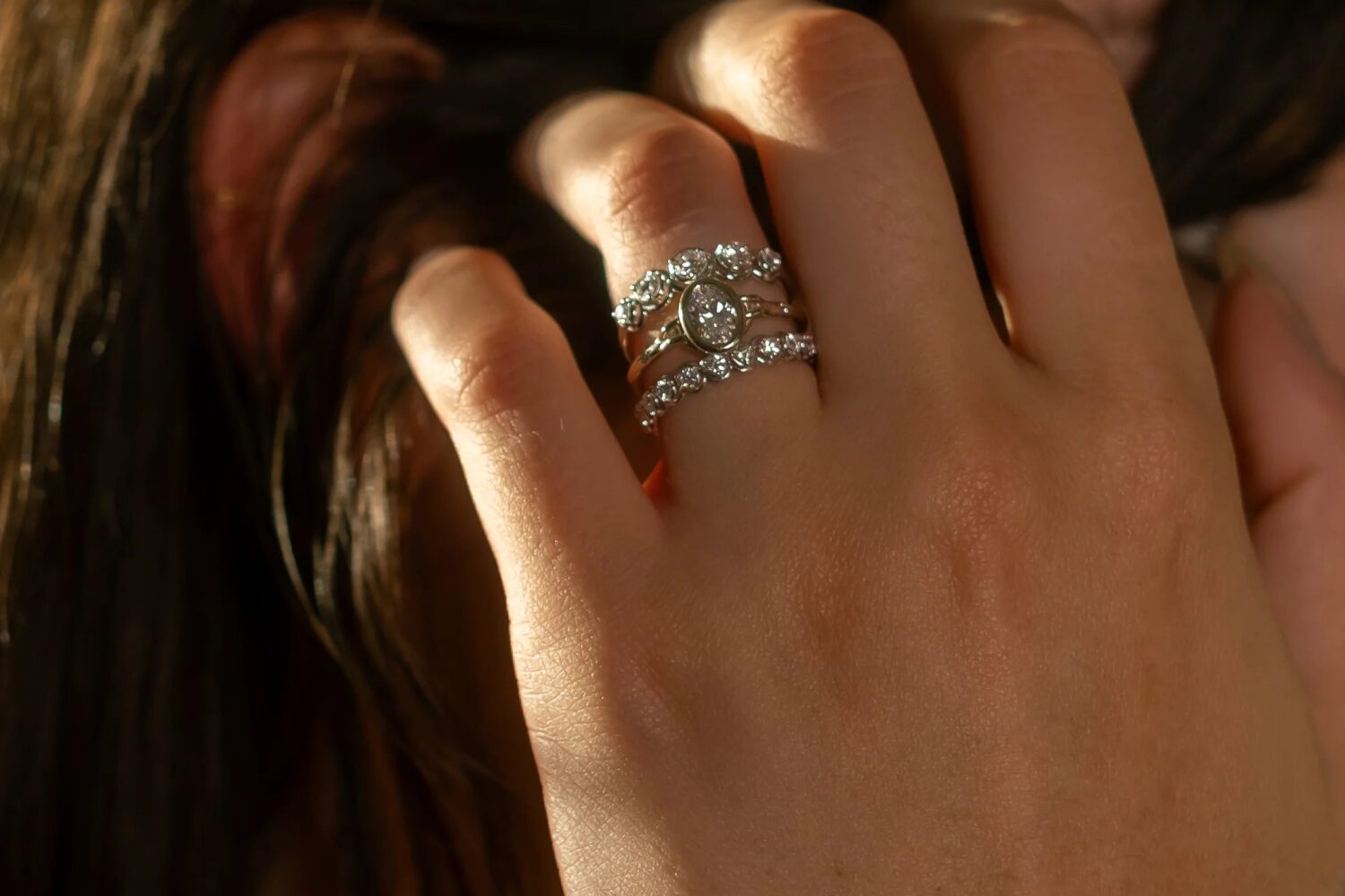 Jenny Askin was packing for a trip to California when Kevin Kawecki said “I think you need one more accessory.” She turned around to find him holding this double-halo ring.