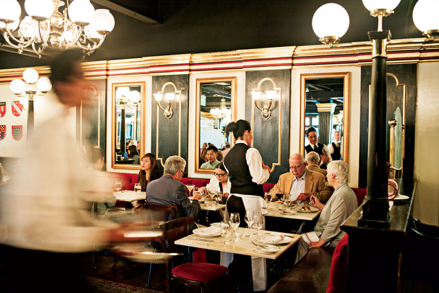 Don’t miss: Shrimp beignets; beet salad; croque monsieur; saffron mussels; lamb with vegetable couscous; roast chicken; chicken-leg confit; pear sorbet.