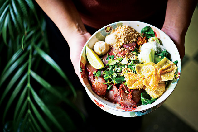 It tells you something that, before your noodles arrive, the server brings a spice tray—four little bowls of chili sauces and chili-stoked vinegars. Well, two somethings: One, this tiny operation adjacent to a Vietnamese grocery values the particularity of the individual palate. And two, its clientele appreciates ping and heat. This is among the most uncompromising Thai cooking in the area. That doesn’t just mean hot dishes are hot. It means chef Phak Duangchandr—Kob to friends and family—doesn’t shy away from the spiky edges that other Thai places are intent on softening: pungency, funky flavors, tanginess. You see it in small touches (the sharp, stinging dipping sauce that accompanies skewers of grilled pork) but also simply in the range of dishes, which include many things you won’t find anywhere else, such as Thai street snacks that aren’t generally thought to be restaurant-ready. Kudos to Kob for recognizing that there are non-Thais out there who are thrilled to dig into the tastes that she and her family have been eating for years.