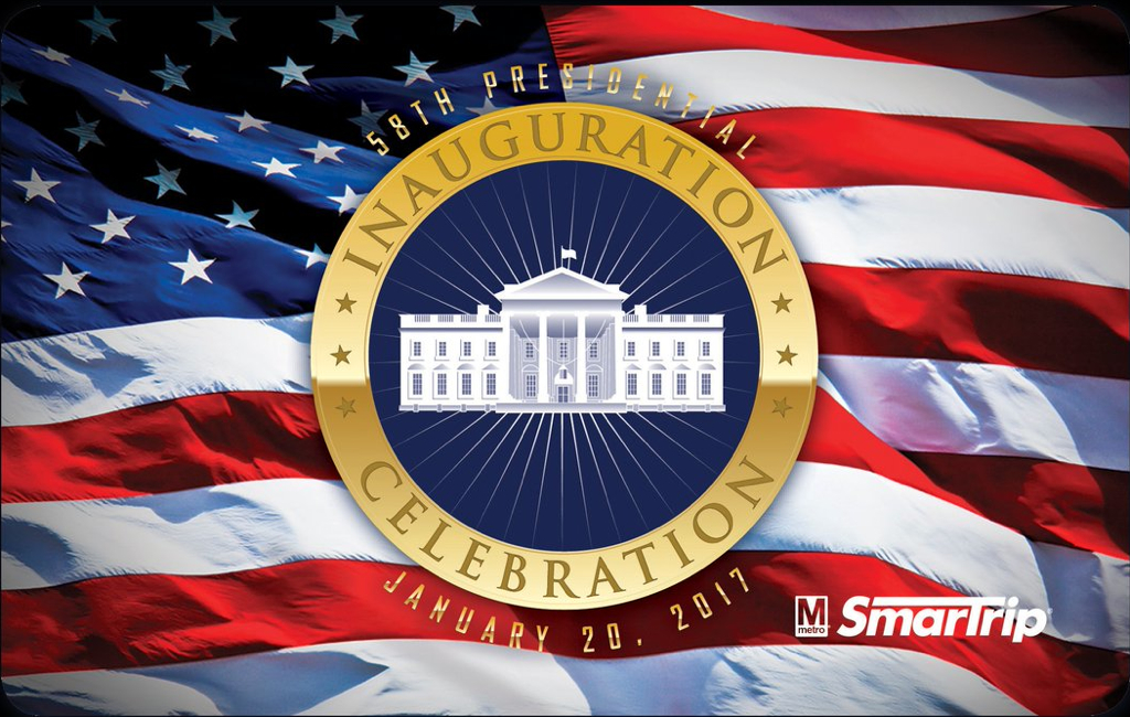Metro’s commemorative SmarTrip fare cards for next month’s presidential inauguration went on sale Wednesday. The cards feature a big seal reading “Inauguration Celebration” against a waving US flag backdrop—very patriotic—but one thing you won’t find on them?