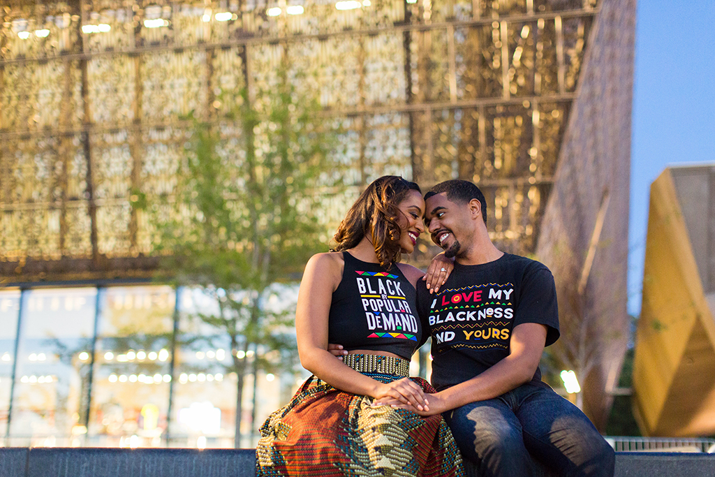 Combining personal and cultural history is a great way to approach an engagement session. In these engagement photos by Iris Mannings, Alyzza Dill and David Hudson, Jr. pull it off beautifully, posing at the Kennedy Center and the Smithsonian’s National Museum of African American History and Culture—two important DC locations that have also been the site of important moments in their relationship.