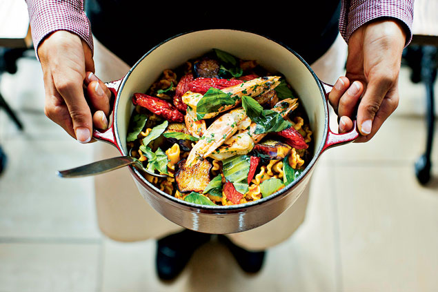 Campanelle pasta with prawns at Casa Luca. Photograph by Scott Suchman