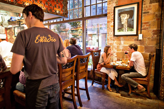 Chefs have shuffled, but you’d never know it—the airtight Spanish menu hasn’t changed much, and the kitchen is as deft as ever. Though most dishes are billed as tapas—and servers may suggest four per person—they actually range from tiny snacks to entrée-size meats with sides. We never miss bocadillos—the slider-size sandwiches filled with, say, pork belly and shishito-pepper aïoli—and anything grilled, such as lemony charred calamari. The bar stirs up some of the best gin-and-tonics. Moderate.