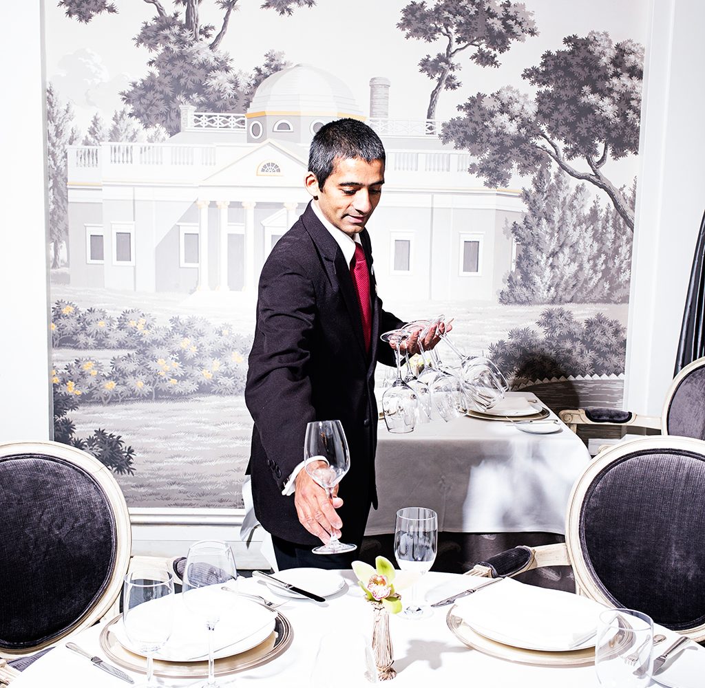 A server sets a table at Plume, which earned a Michelin star. Photograph by Scott Suchman