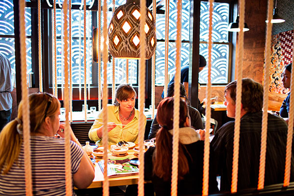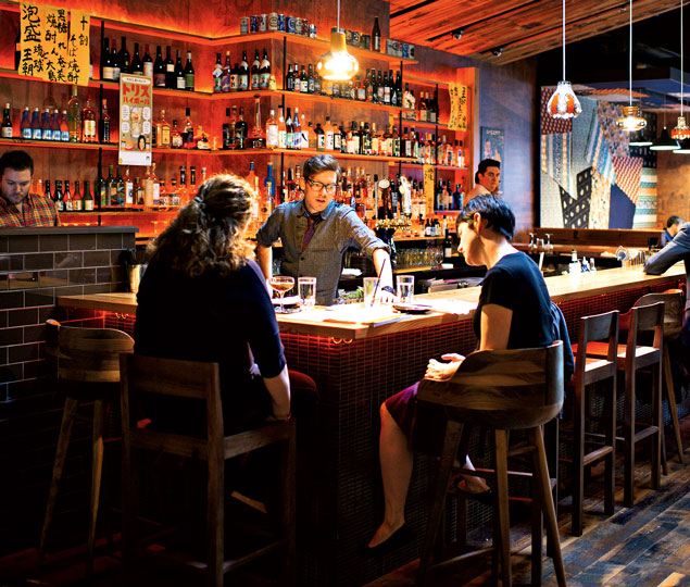 Even weekday lunch involves a waiting list at Daikaya’s shoebox-size Sapporo-ramen shop, a testament to the springy noodles and complex broths. Deeply satisfying soups make for a quick feast—we particularly love the nutty mugi-miso or roasted-vegetable shio brimming with Brussels sprouts and mushrooms. The lantern-lit izakaya above is built for a more leisurely meal or a night of drinking. Chef Katsuya Fukushima creates small yet flavor-packed plates that pair perfectly with the many sakes, whiskeys, and innovative cocktails (try a seasonal draft mule such as shiso-watermelon). Many of the tasty new snacks riff on comfort fare—we’re addicted to the sausage-stuffed shishito poppers with hot mustard and to morsels of fried Maryland catfish dunked in pickled-ginger tartar sauce. Inexpensive to moderate.