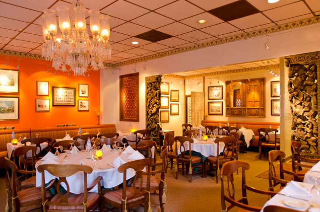 Lush fare, enveloping banquettes, and the hypnotic twang of sitar music make Sudhir Seth’s dining room the equivalent of a chill session led by a chef/guru. The menu touches on a variety of regional cuisines, though deliciousness crosses all borders. Favorites include a casserole of tender baby eggplants in sesame-peanut gravy, coconut-shrimp curry flavored with cloves and ginger, and an apricot-studded Parsi lamb casserole capped in crunchy potatoes. Even a simple bowl of mah ki dal—a traditional side at every Indian restaurant—is one you’ll grudgingly share. The black lentils are cooked overnight to an ultra-creamy consistency—dal to fantasize about or, better yet, to eat by the spoonful. Moderate.