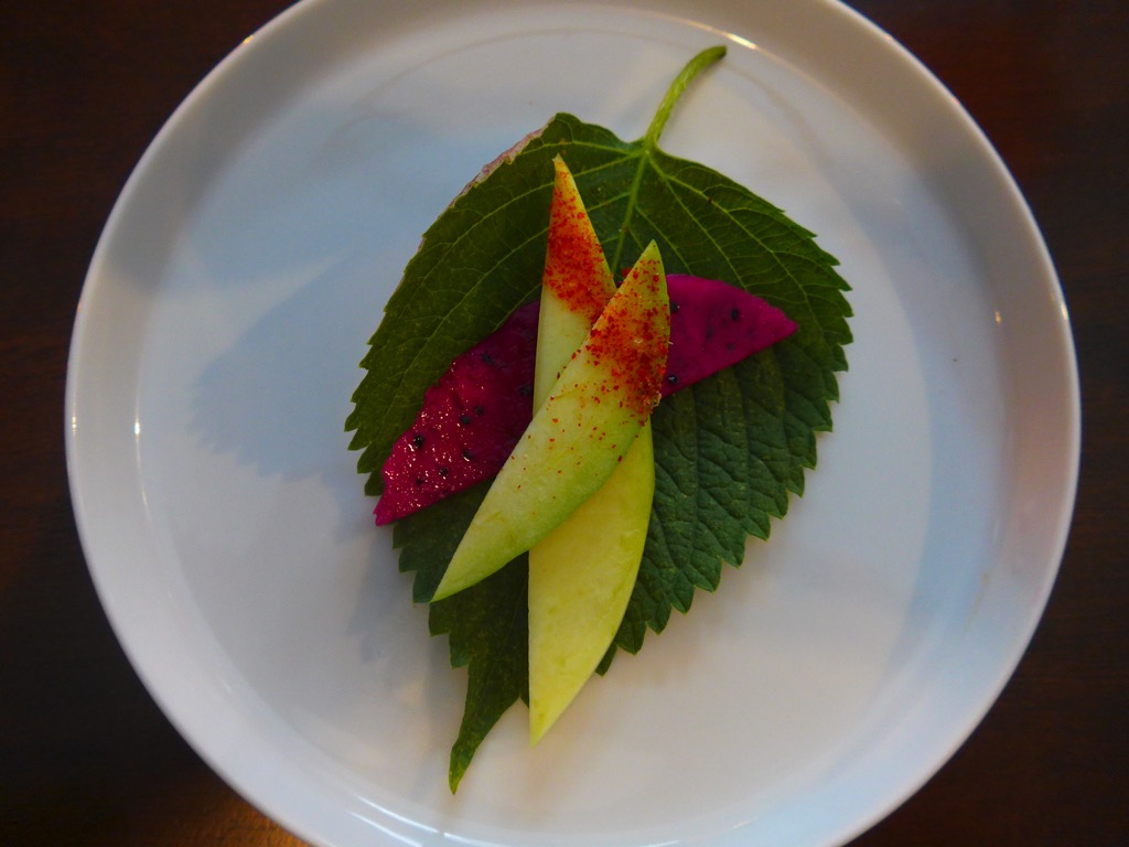 Things kicked off with a jackfruit salad—juicy hunks of sweet, orange fruit threaded with fried bits of dried tofu brought back from Saigon. The dish popped with bite, tanginess and crunch thanks to cilantro, preserved radish, and red onion. A dish called “pretty shrimp” translated to a head-on crustacean encased in pork paste and crispy green rice, then set atop mayo perked up with serrano chilies. A perfect bar snack. And a bowl of oyster congee, topped with caramelized anchovies, Pungateague oysters from the Chesapeake, and a mix of apple and kohlrabi, was pure comfort.