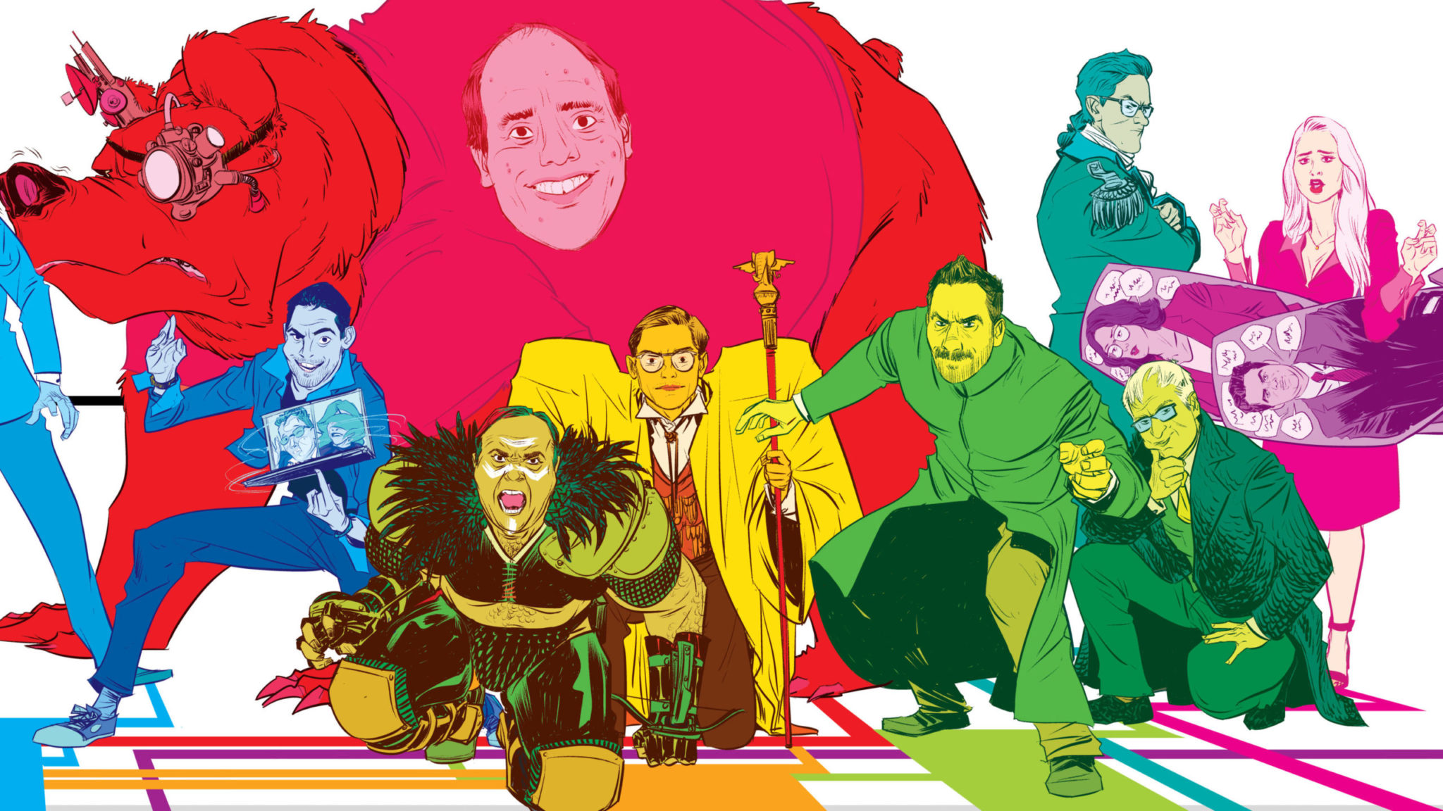 *Hover over the red pins to read character descriptions. Illustrations by Nathan Fox.