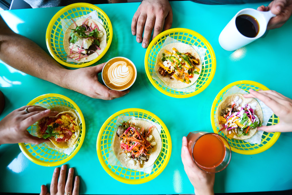 The all-day menu includes just six tacos—half with eggs. The small kitchen (a converted storage closet) was one reason for avoiding meat. Also: “We think we can get as much flavor and taste out of vegetables as meat,” Matt Carr says.