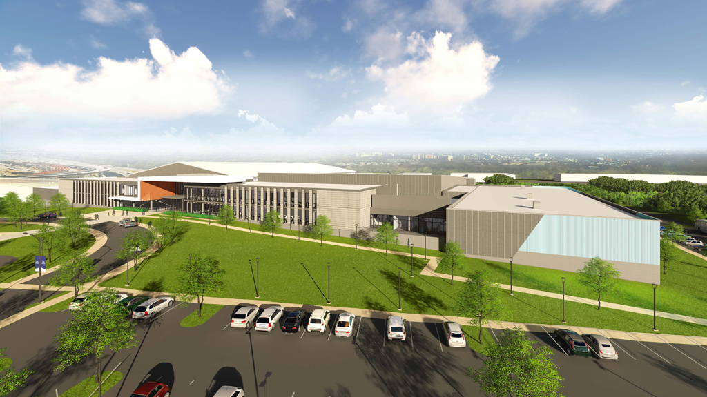 The complex, which broke ground for construction on Thursday, has so many different elements to it, it sounds like satire when you list it all out—but we’ll try anyways. There will be a FIFA regulation-sized turf field, two NHL regulation-sized ice rinks, four full-length basketball courts (which can transform into nine volleyball courts), an Olympic regulation-sized pool, six batting cages, eight international regulation-sized squash courts, seven golf simulators, 3,000 feet of climbing and bouldering walls, a gymnastics training center, a 50,000-square-foot health club gym, a spa, and a sports medicine center.