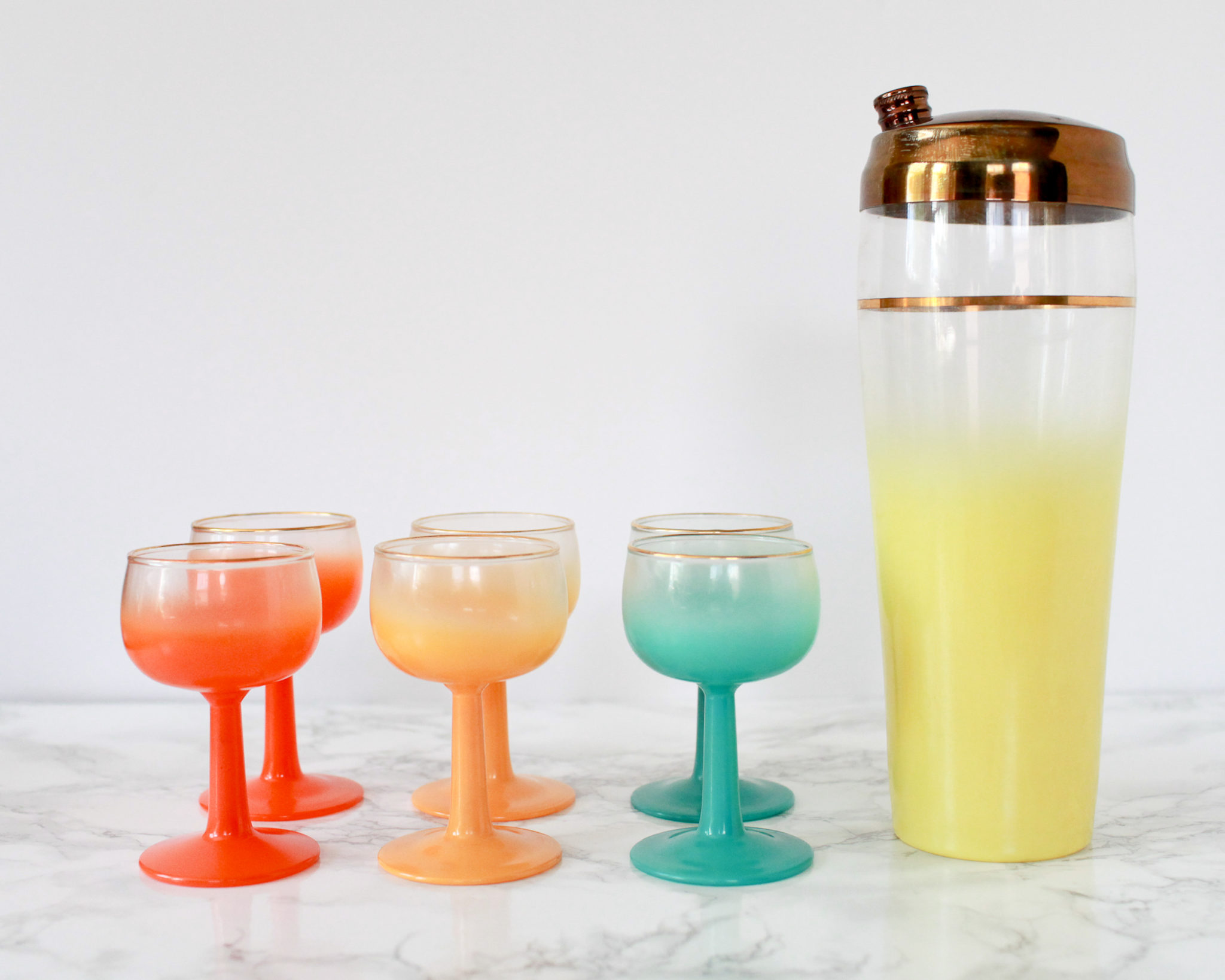 Whitehead appreciates the way older glasses were made just the right size for cocktails and the detail in design. He’s particularly drawn to mid-century vessels. “Before stuff was really mass market the way it is today, people actually poured a lot of thought and care and love into the things that they made,” he says. “It just reflects how important cocktails and drinking culture was to the people making those glasses and using those glasses.”