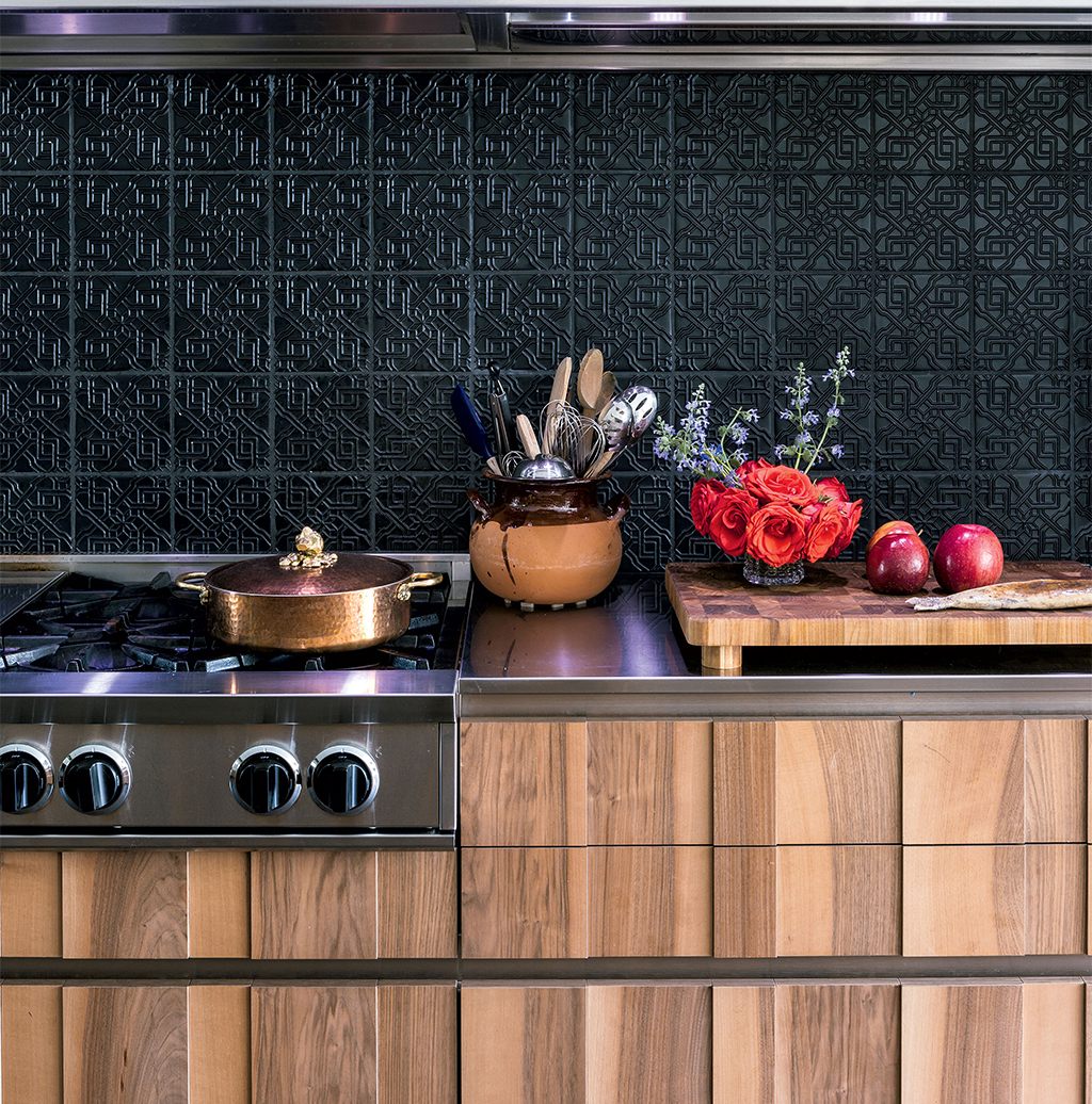 Boffi also added chef-style stainless-steel counters—similar to those at the owners’ commercial bakery—around the stove, as well as textured, matte-black Domenico Mori tiles on the backsplash. Boffi’s Julia Walter led the effort. “It all has a lot of structure and style,” she says, “which is what they were going for.”