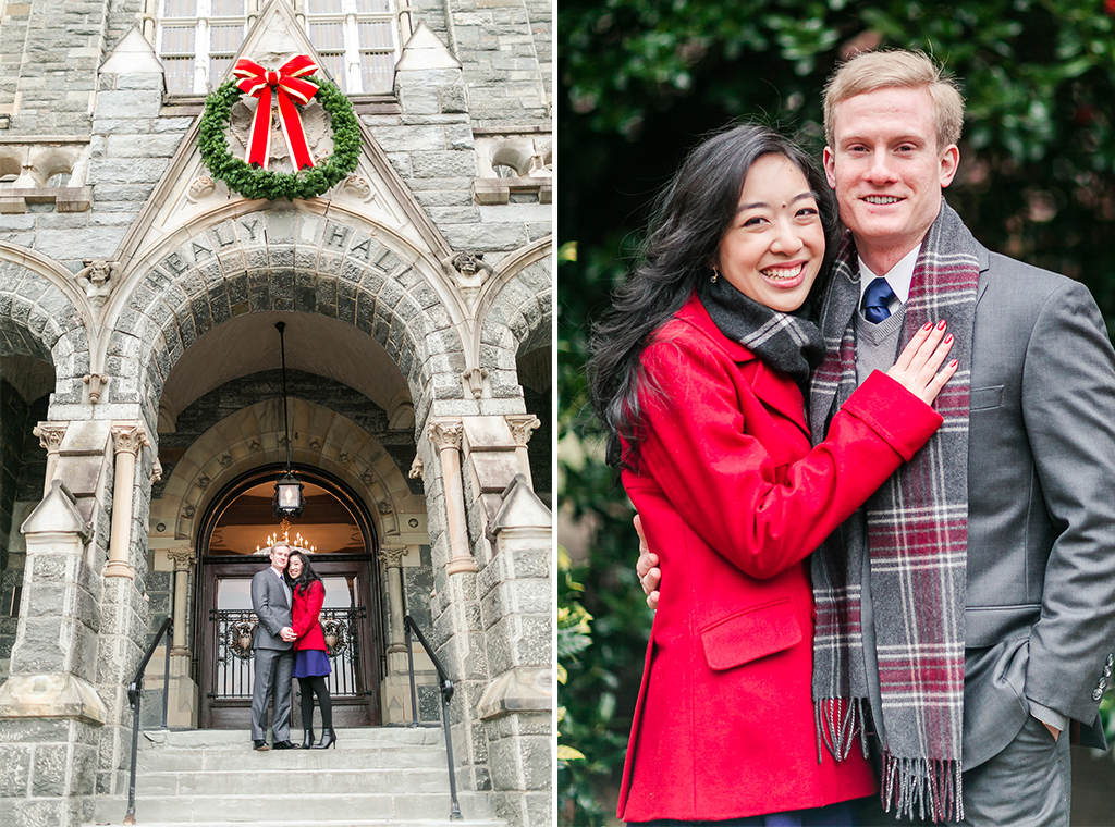 Claire Shiao, an accountant, and Paul Eleshewich, a firefighter, met at Georgetown University, so it only made sense to return years later to recapture some of those earliest memories—but this time, as an engaged couple with a photographer, Ann Hoang of Anny Photography, trailing them to get some gorgeous shots. See the photos from their Christmas-inspired engagement shoot below.