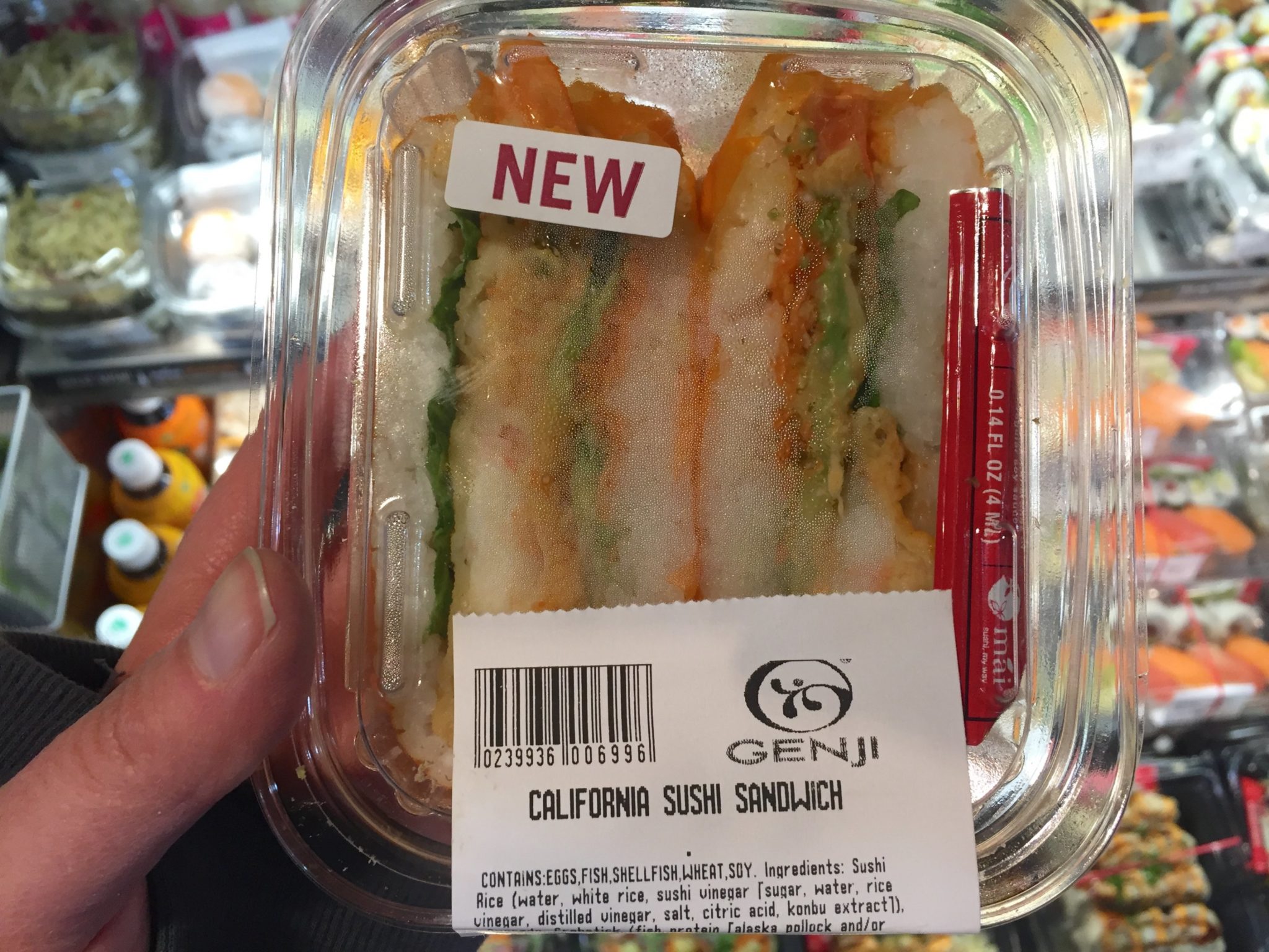 Despite being left with a vague queasy feeling and a plastic container with decorative lettuce, we’re not opposed to the sushi sandwich in concept. In the right hands with the right ingredients—not prepackaged on a grocery store shelf—we would give it another go.