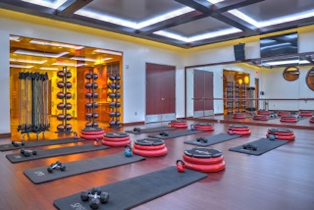 Existing structural confusion aside, modern features include an iPad for sign-ins and an app that allows you to pick a class and even select your spot ahead of time, a relief for back-row cyclists. Lighting in each room can be adjusted for mood, and the yoga studio has a large screen in the front of the room that displays serene images of sunrises and moonlit water “to transport you to a place with a feeling,” says Mensh. The locker rooms have Italian tile and rainfall shower heads. The courtyard for outdoor classes features a fire pit.