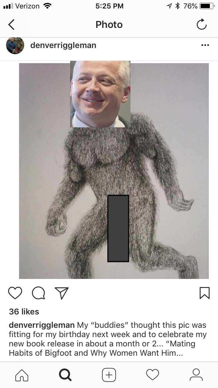 The Bigfoot controversy kicked off Sunday afternoon, when a Tweet from Riggleman’s opponent, Democrat Leslie Cockburn, “exposed” his love for sexy Bigfoot. Cockburn, who, just to make this a little weirder, is Olivia Wilde‘s mother, wrote “This is not what we need on Capitol Hill” under a screenshot of a post from Riggleman’s (now private) Instagram account.