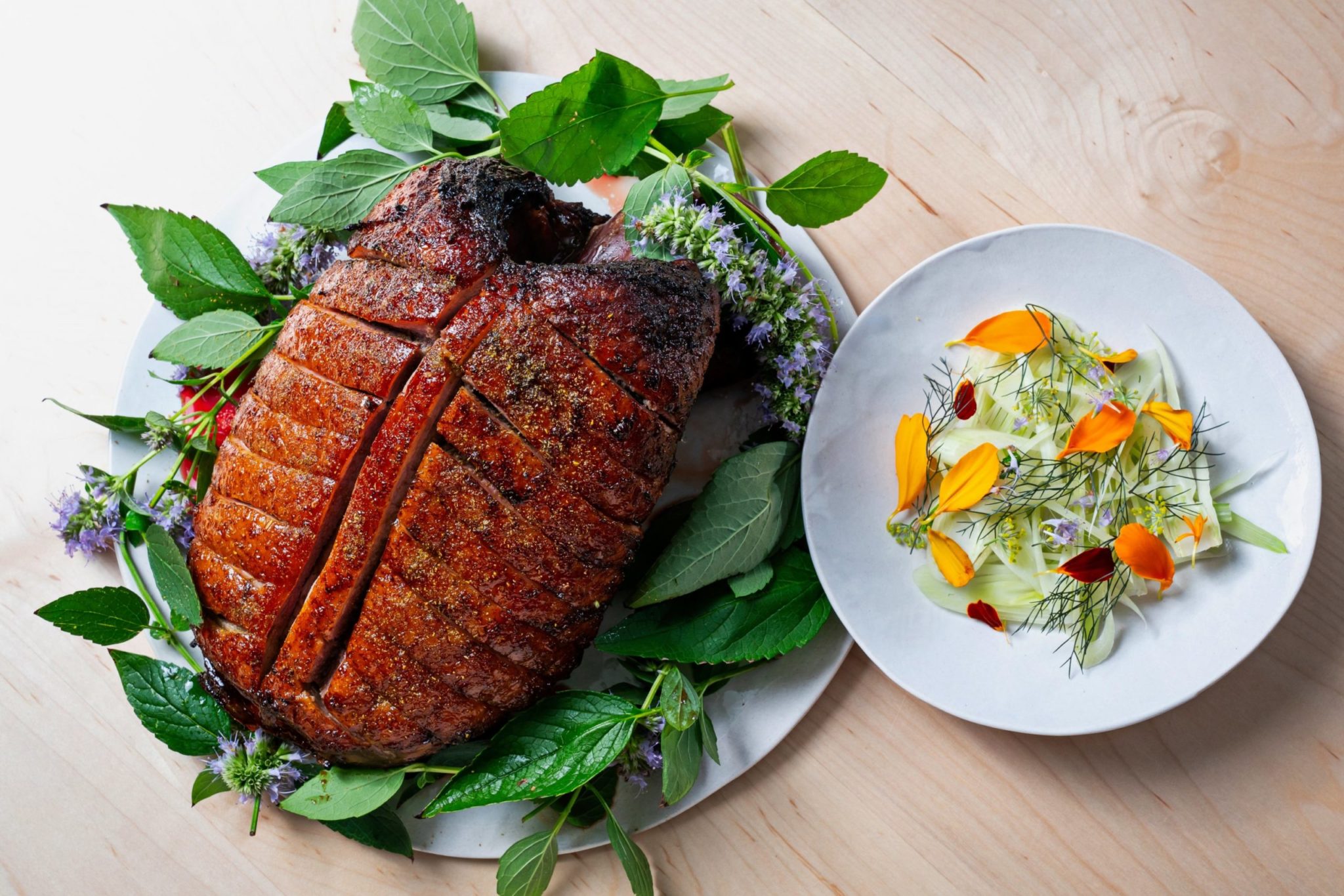 It’s a series of love letters, in a way. Spero has been tinkering with the roast duck recipe for almost two years to perfect the shareable platter of fried thighs with black licorice and fennel. An elevated riff on steak and potatoes is an homage to the kinds of dishes Spero grew up eating in Baltimore County, but with a cheffy twist: the ribeye is tempered over charcoal and then pan-seared before resting on the coals again; the potatoes are tossed with butter and allspice oil; and it’s all topped with crispy fried beef and sunchokes.
