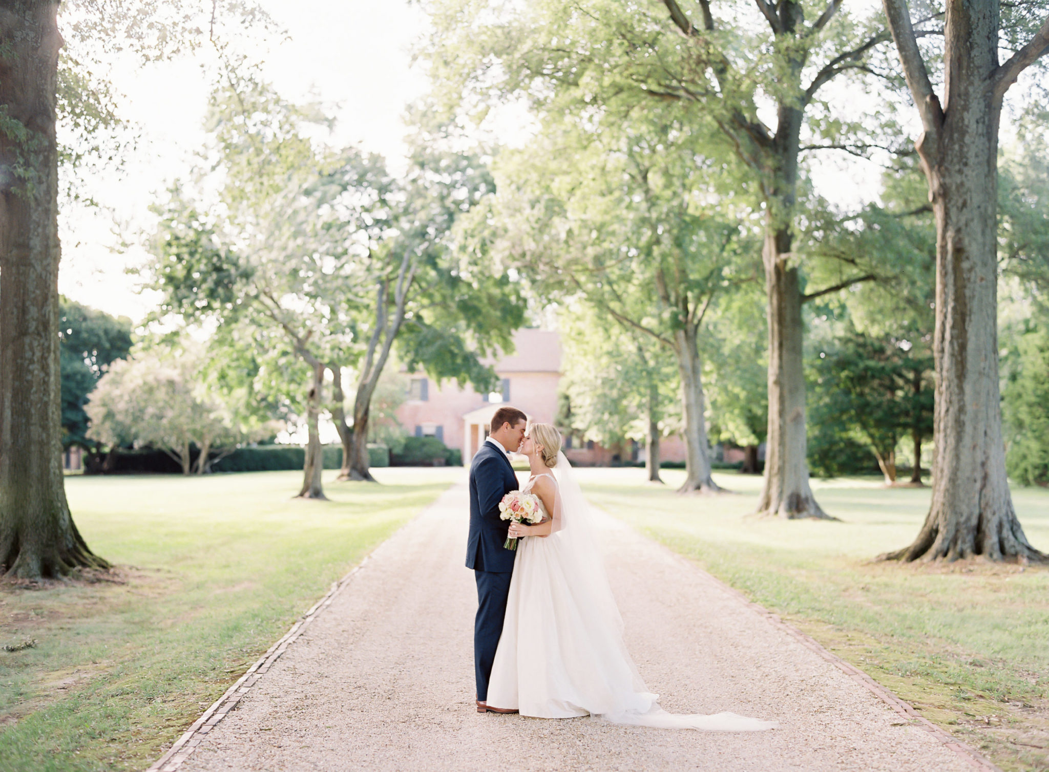 They planned a waterside Colonial-inspired wedding (to match their venue, built in 1733) in just six months. The elegant, historic feel carried through from their floral arrangements—plums, peaches, pivet berries, and figs, in addition to more traditional blooms such as roses and hydrangeas.