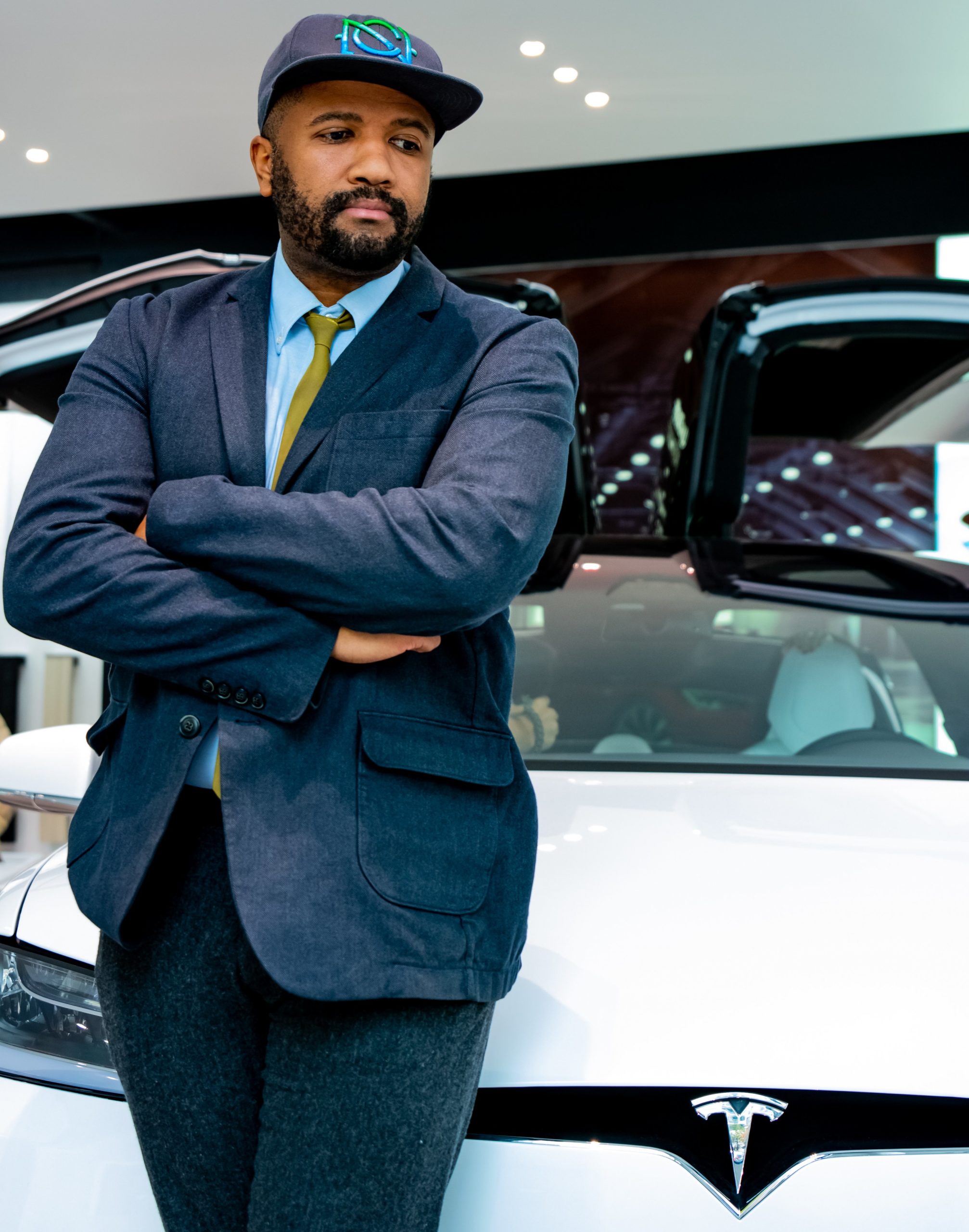 In grade school, Wardrick was taught to never be the most underdressed person in the room. “If I’m walking in expecting business casual, then an oxford button down with a tie and cardigan is my go to,” he says.