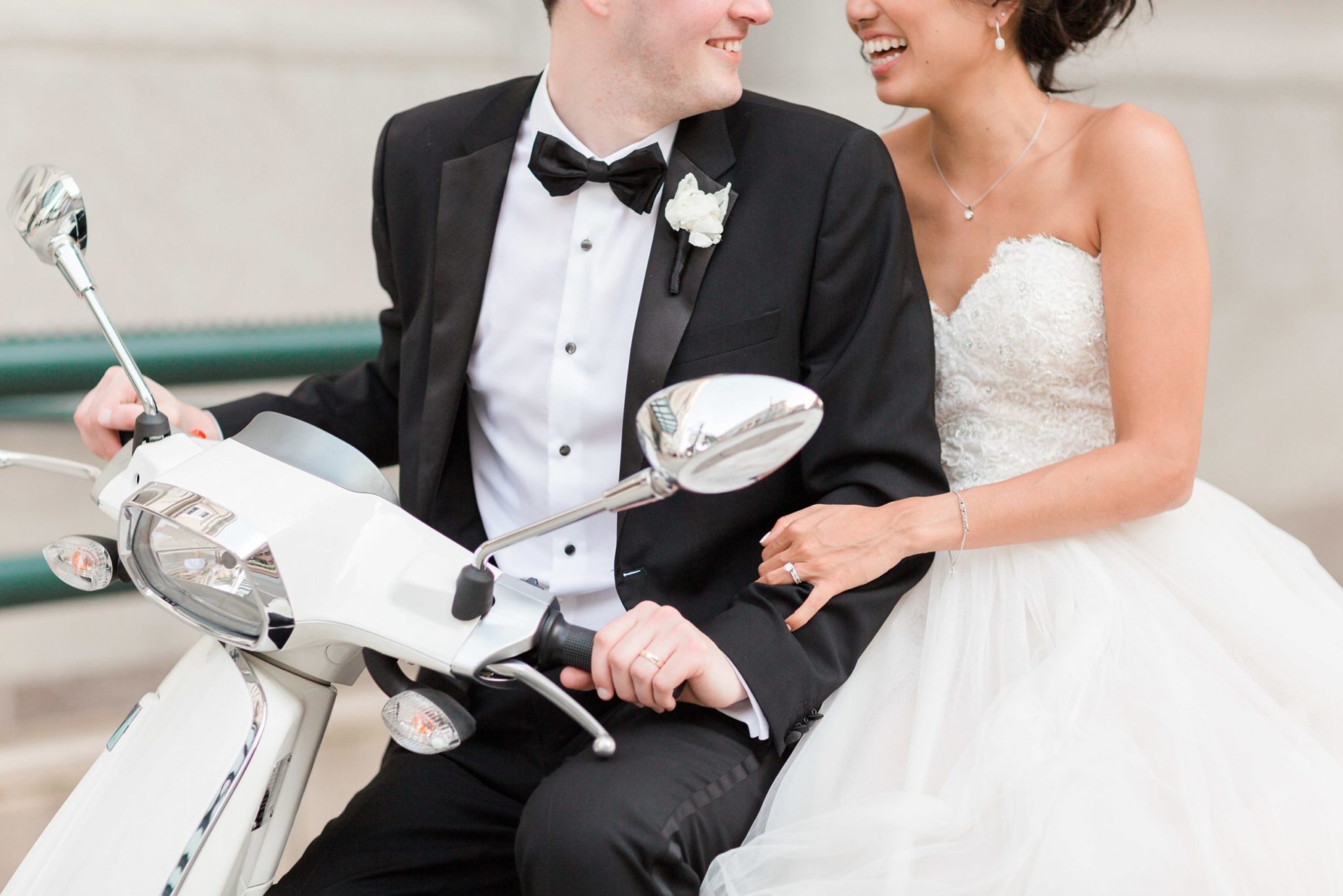 “One of my favorite details were our Vespa escort card holders. We have a Vespa of our own, and it was our first big purchase together,” says KC. “We used our Vespa in our engagement pictures, and throughout the wedding planning tried to incorporate it any way that we could.”
