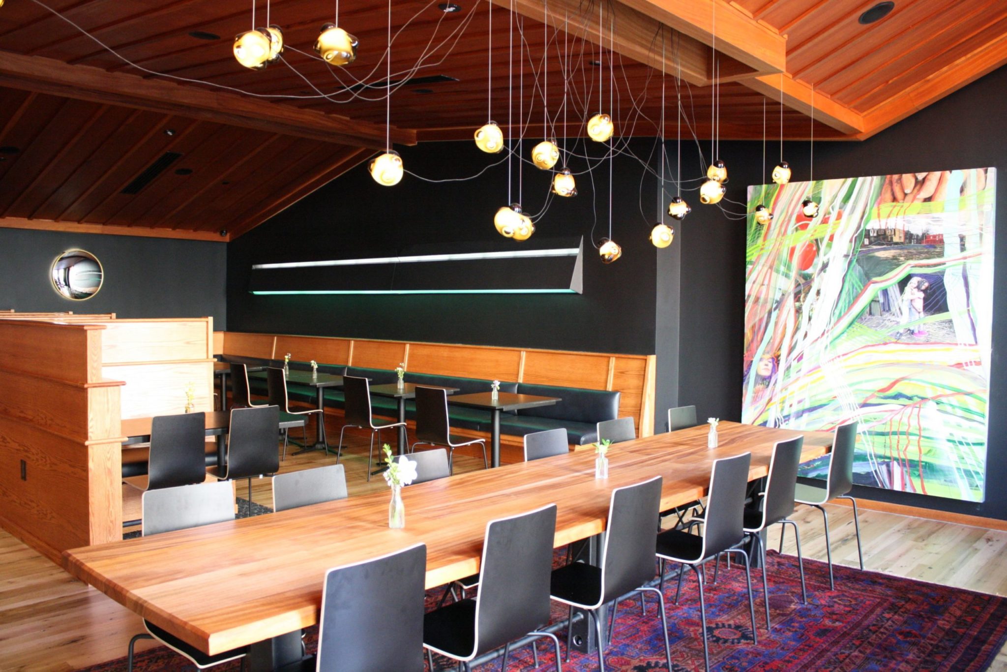 Tony Velazquez, an architect by trade, designed the dining room with the help of his artist son Zak. The African mahogany ceilings, black walls, and plethora of booths are meant to give the place a homey feel.
