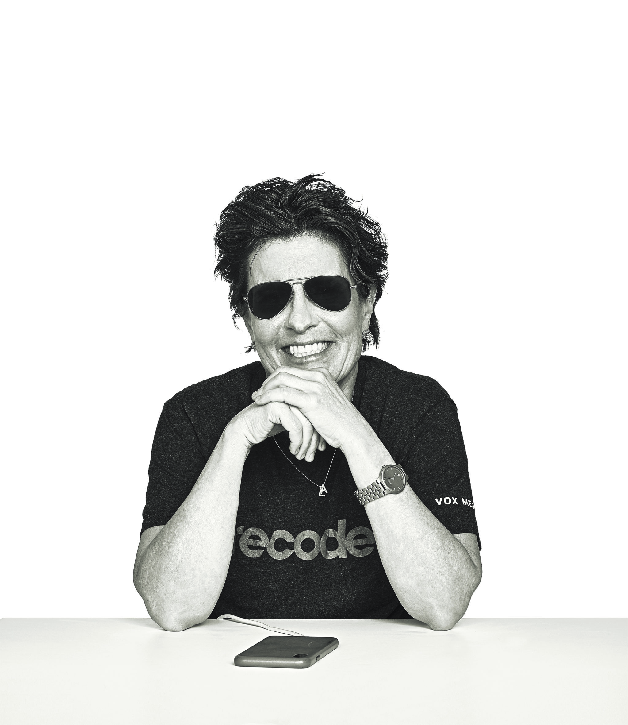 Swisher somehow found time to meet us at the Dupont headquarters of Recode’s parent company, Vox Media. As we chatted, she removed her trademark sunglasses, ate a salad, and—because she seems to never quite stop working—periodically broke to take calls and check the news.