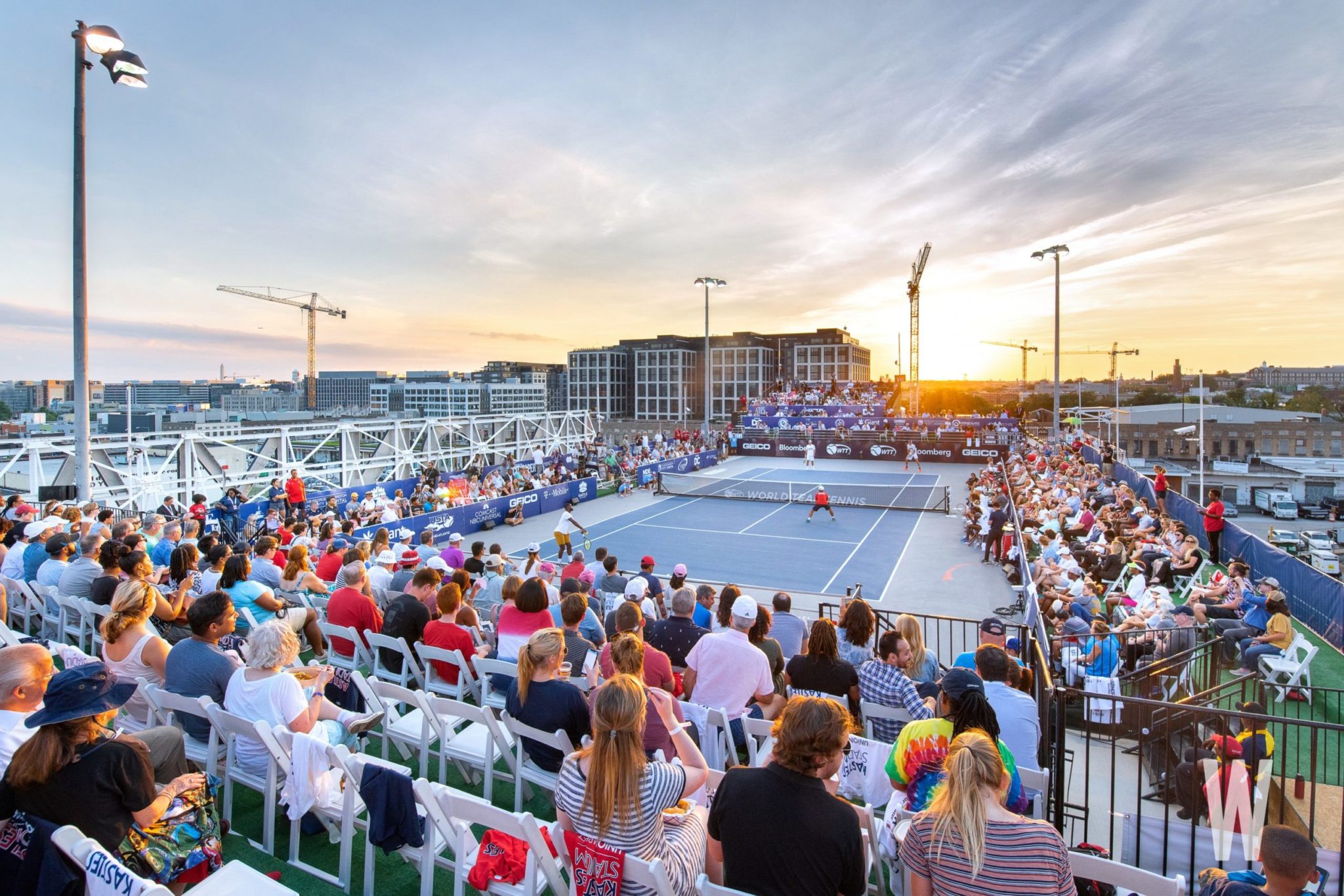 When we learned in April that Washington’s pro tennis team, the Kastles, would play their 2019 season on the roof of Northeast DC’s Union Market, we had some questions. Chief among them: Can they really build a stadium up there that quickly? Luckily, the answer was yes. Jodie McLean, CEO of Union Market’s developer EDENS, says the stadium came together over 90 days, with a deck getting installed first, followed by the tennis court and seating. On Monday night, we were there as the Kastles played their home opener—and first-ever rooftop match—against the Las Vegas Rollers. Here are eight takeaways.
