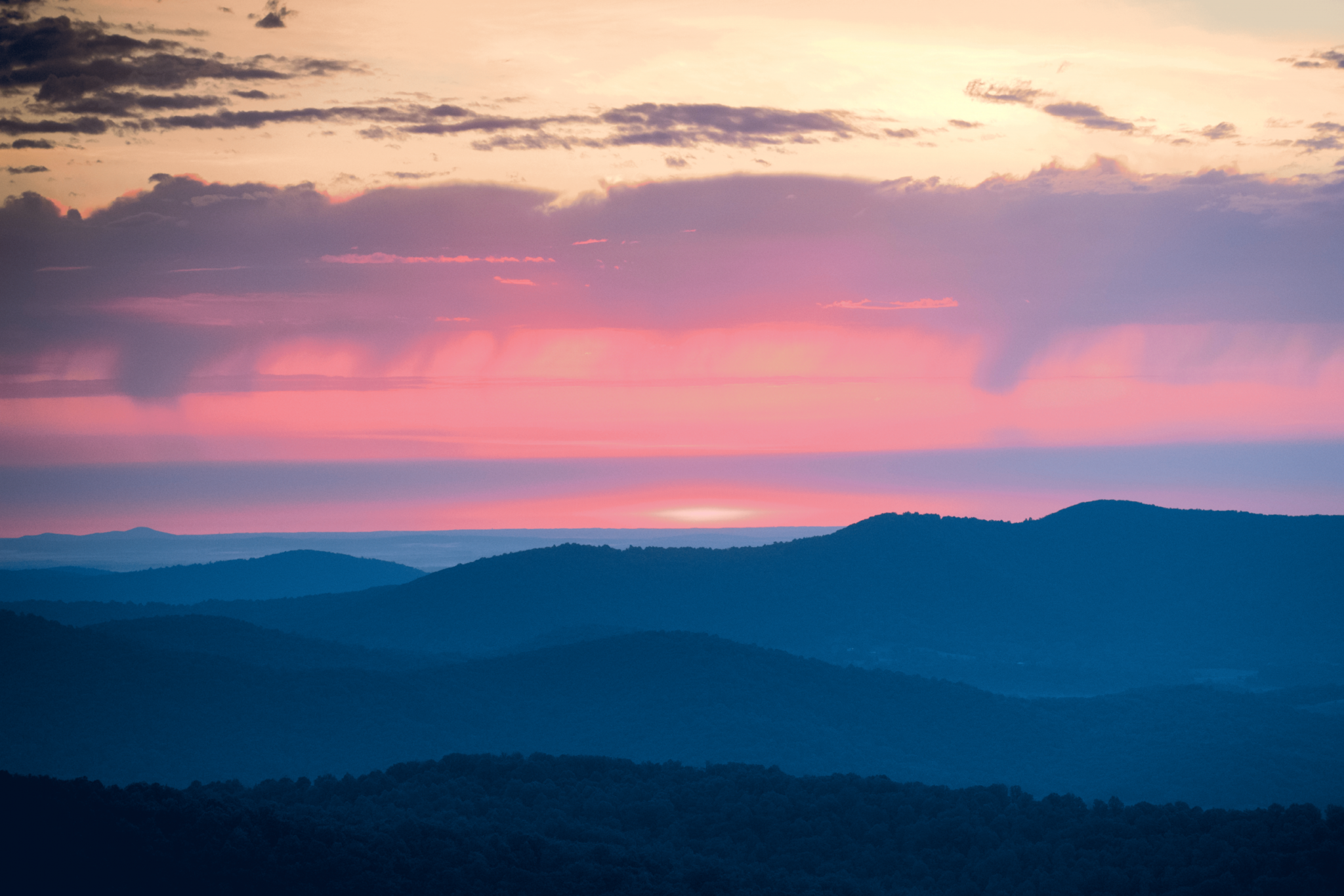 What makes it great: This glorious park stretches along mountaintops for more than 100 miles in Virginia, from Front Royal to near Waynesboro. Its scenic roadway, Skyline Drive, offers almost 70 easily accessible and spectacular overlooks of the verdant forests descending to farmland and countryside. There are 500-plus miles of hiking trails as well as lots of other activities, including camping, horseback riding, and fishing.