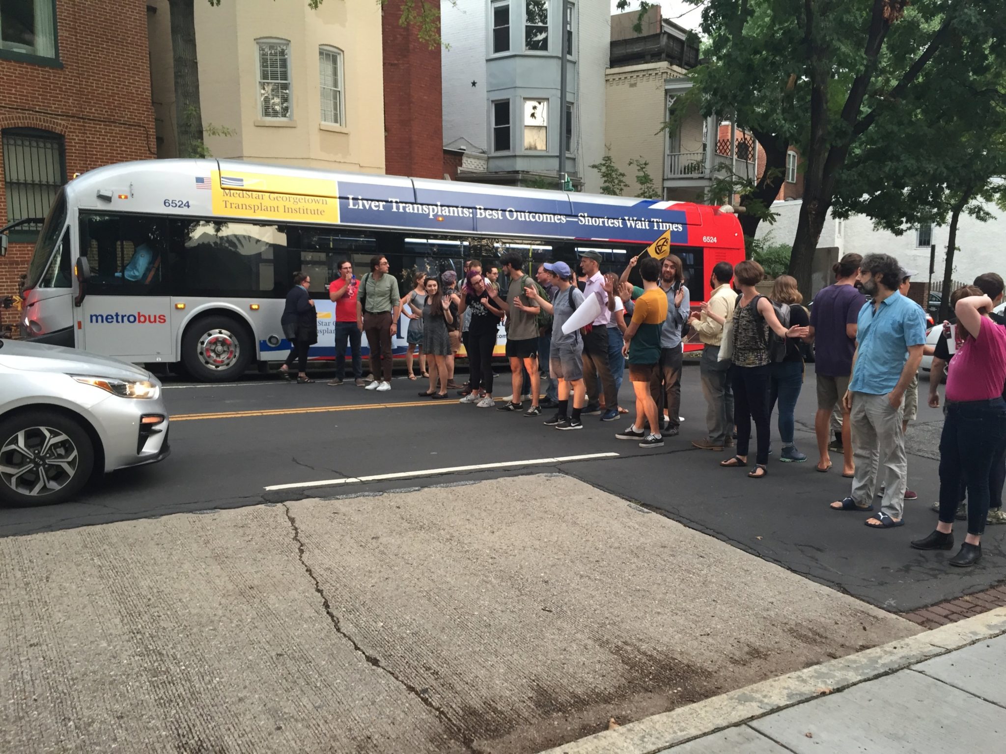 On Wednesday night, dozens of protestors choked off traffic on Florida Avenue between R and S streets. Chanting, “The earth is on fire! Put the fire out!” they ignored the blaring of car horns, the frustrated glares from neighborhood residents, and verbal threats from drivers along the lines of “fucking move or I’ll smack the shit out of you.”