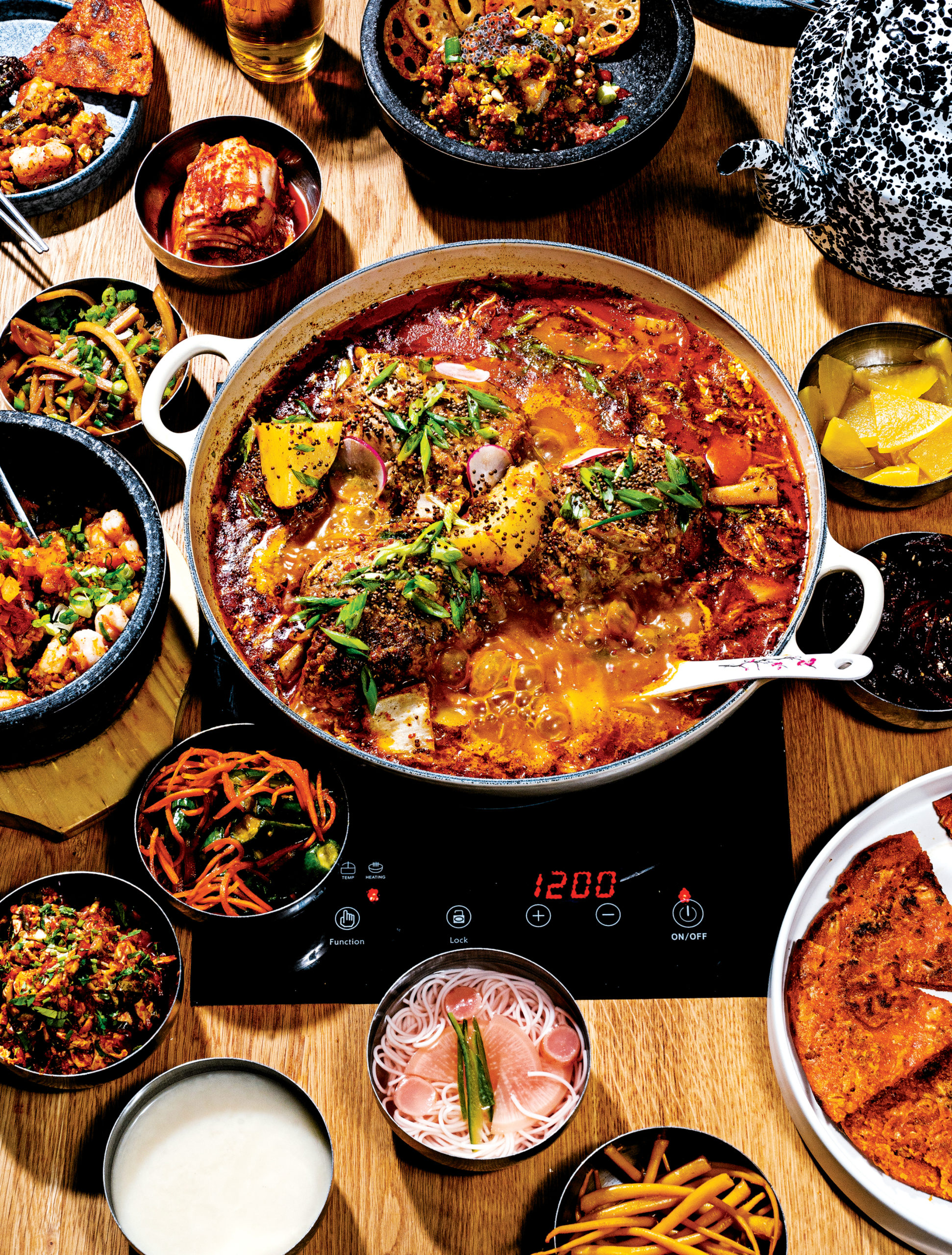 Yet when we thought about the food that brought us the most joy in 2019, dish after dish from this plant-filled, bi-level dining room came to mind. The homey braises, dumplings, and kimchee pancakes. The peppery seafood fried rice! It’s been a fried-chicken-mad year, but we’ll never forget the crackling first bite of the twice-fried bird here, glazed in gochujang and drizzled in Alabama-style white barbecue sauce. Even the kimchee-topped hot dog, $5 at happy hour, is something we’d take over a foie-gras-laden boudin blanc. Have it with a cup of makkoli, a lightly fizzy Korean rice wine that the bar infuses—deliciously—with flavorings like roasted pear and burnt sage.