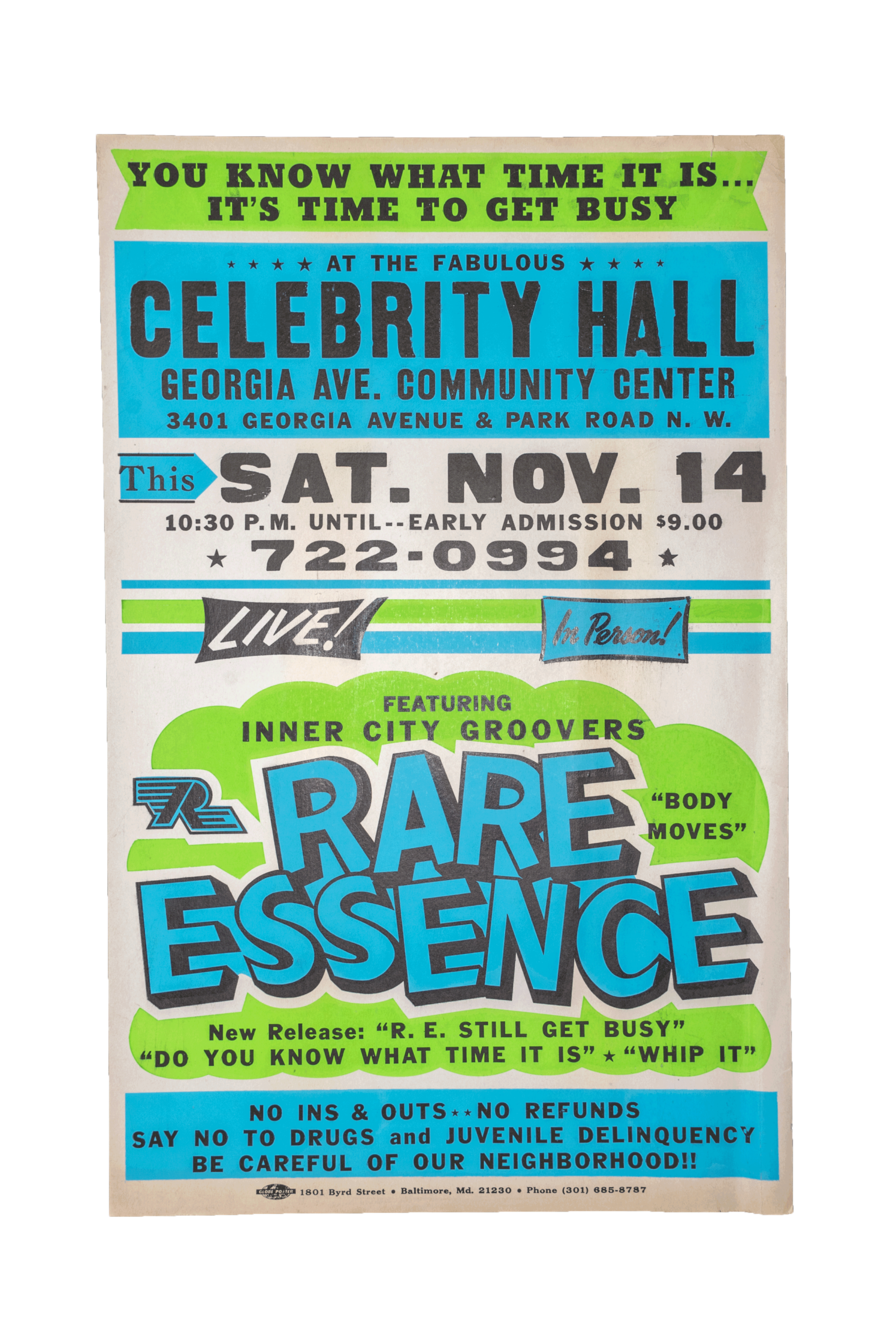 During the ’80s and ’90s, bold go-go posters were splashed around the city to promote DC’s homegrown sound. Made by the Globe Printing Corporation in Baltimore, the signs are emblazoned with the names of go-go greats like Rare Essence and Chuck Brown. Check out some of the iconic posters.