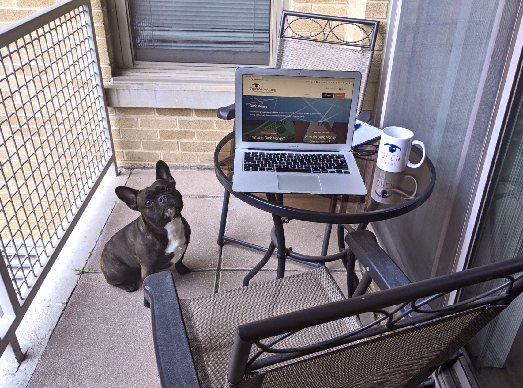 My workday schedule has not changed much beyond the location since I am fortunate and grateful to have a job that allows me to work remotely. I’m of the opinion that the proliferation of misinformation and other issues exacerbated by the coronavirus pandemic have made transparency all the more important, so I am glad the Center for Responsive Politics has safeguards in place that enable us to continue working. During the last two weeks of self-quarantine and working from home, the only in-person interactions I have had outside of my fiancé are making essential purchases, which I have tried to keep at a minimum.