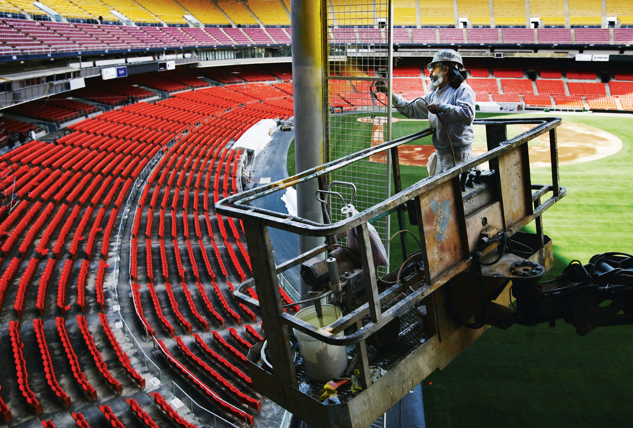 Allen Y. Lew, CEO of DC Sports and Entertainment Commission, who oversaw the RFK renovation: “People don’t realize how old RFK was. They broke ground on the stadium when Dwight Eisenhower was President. John F. Kennedy threw the first pitch. When we started power-washing the stadium, we didn’t realize it was going to pop out all the caulking, weather-stripping, the stuff that was holding the place together. It just blew everything out.”
