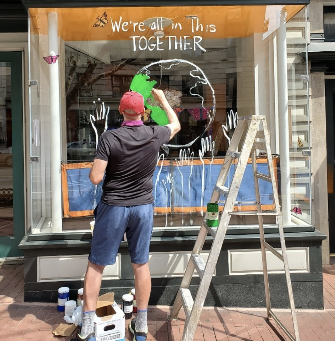 In addition to picking up a paint brush himself, Shallal is paying artists out of his own pocket to help with the murals. He sees it as a way to support artists who may have lost gigs and still want to showcase their work—while social distancing. He’s also encouraging others follow suit using the hashtag #PaintTheStorefronts.