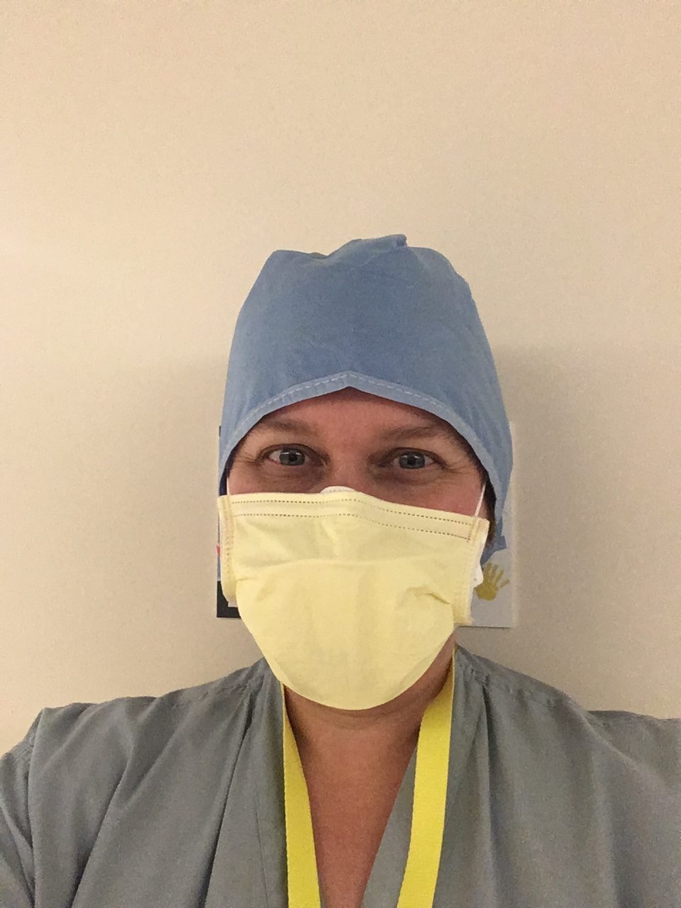 “It is physically and emotionally draining. Physically because being in the full infection prevention gear, you get hot. There are multiple layers on your face. We’re trying to take breaks, but that’s not always possible with critically ill patients. For intensive care patients, we are wearing the N95 respirator masks or the personal air purifier systems that we would normally reserve for patients with tuberculosis or measles or chickenpox. We’re also wearing goggles or a face shield, gloves, and an isolation gown. The N95 has to be covered, so if we wear a face shield that takes care of it, but if you’re wearing goggles, you also have to wear a second mask. And then most of us are also choosing to cover our hair. That’s not required, but [it’s] something that makes us feel more comfortable, so wearing a surgical cap or scrub cap that can be washed. That’s another heat trapper.
