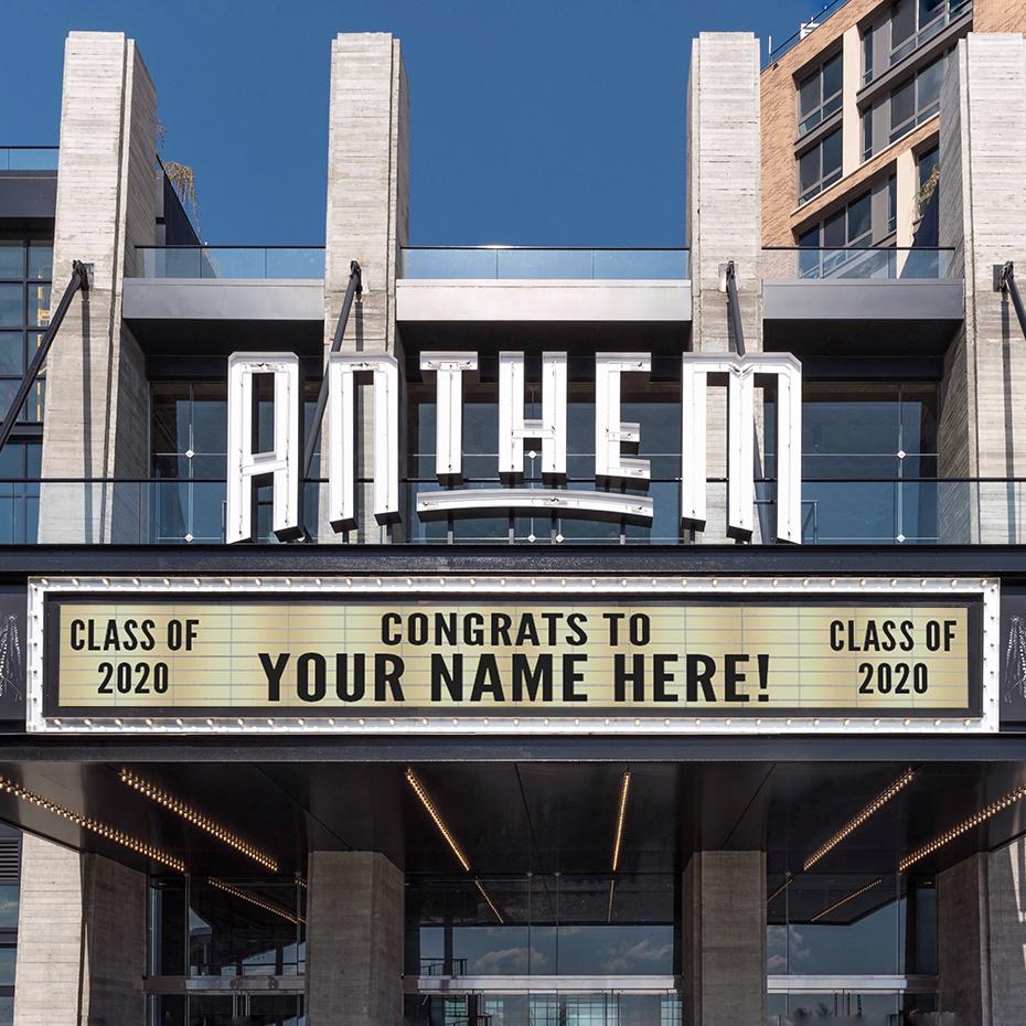 The Anthem is offering recent graduates the opportunity to put their name on the venue’s signature marquee for a photo-op. For a 15-minute slot, members of the class of 2020 can take photos in front of the personalized marquee for $100. Note: It’s BYOP, so grab your favorite quarantine photographer a.k.a. your relative and make sure you take them with you. Caps and gowns encouraged.