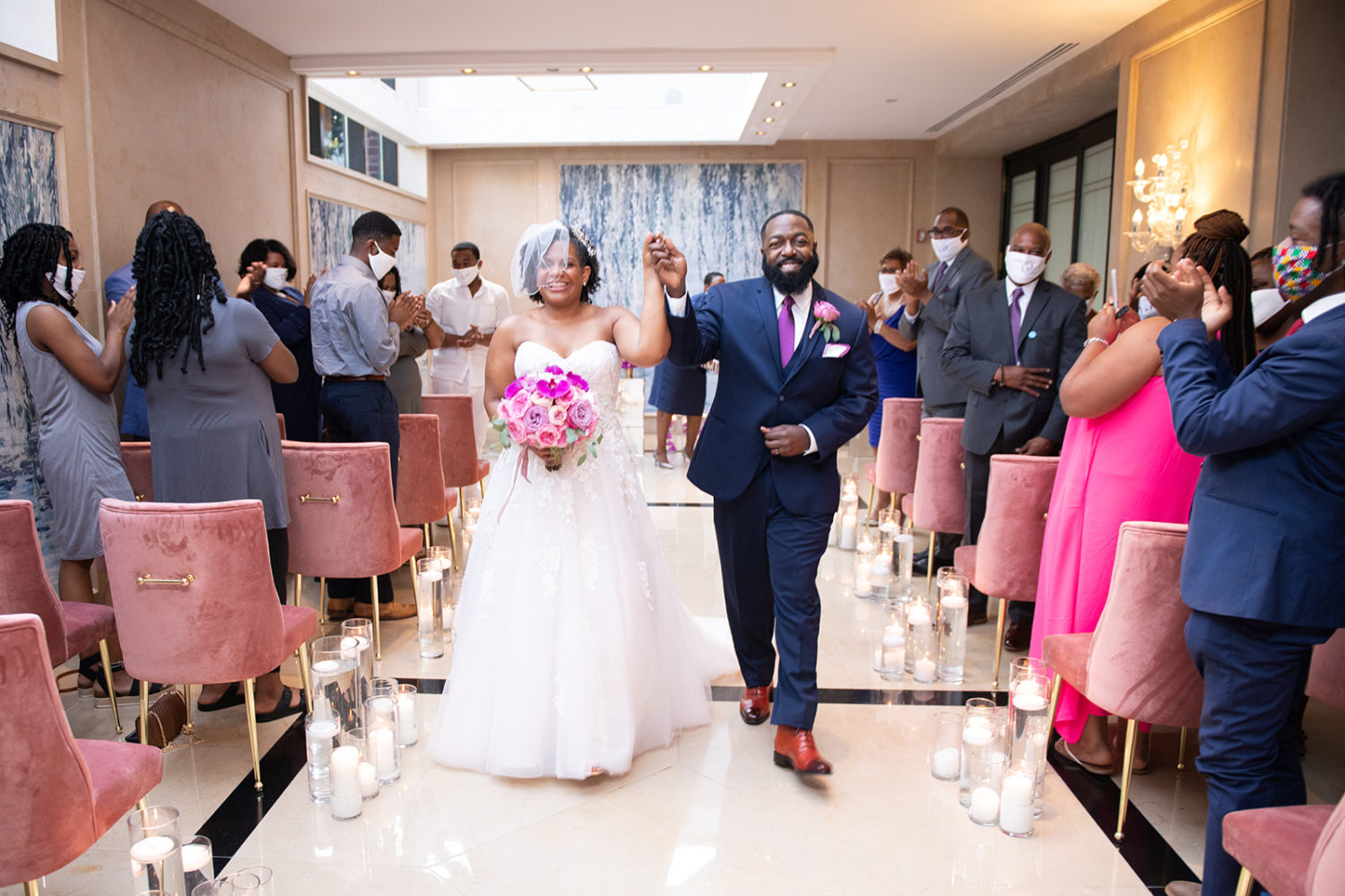 Morgan and Quacey’s lavish big day featured a custom ballgown, a ceremony filled with loved ones, a Rolls Royce, and a reception decorated to the nines, complete with a smoke-filled first dance and five-tiered-fondant-frosted cake confection. The couple’s 405-guest MGM wedding has us reminiscing about larger celebrations, (go away corona!), but also looking ahead to what the future could hold. Plus, there are plenty of special details that could be translated to a smaller ceremony. Check out the glamorous hotel wedding below to learn more about this DMV-area couple’s day.