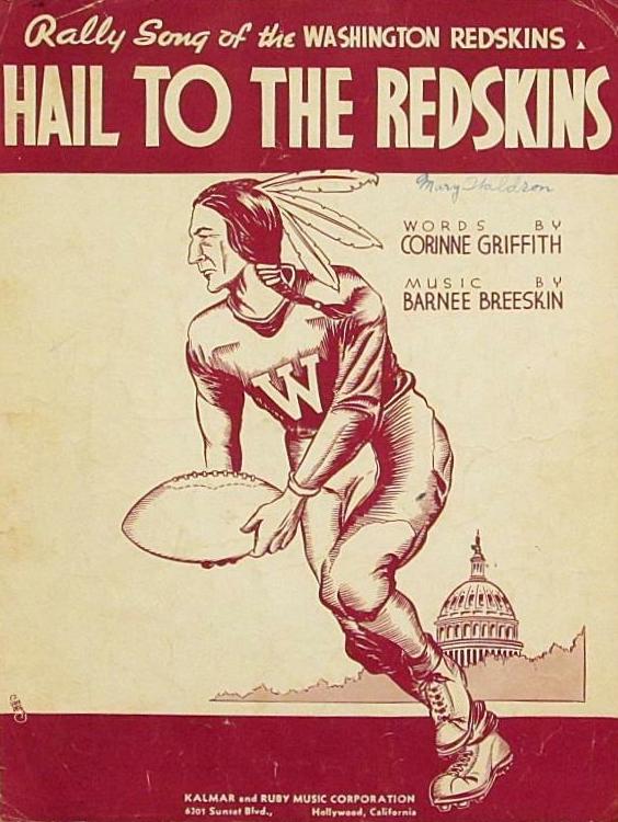 The song’s music was written by Barnee Breeskin, described at the time of his death by the Washington Post as “a band leader, public relations executive and man about town,” and its lyrics were written by the film actress Corinne Griffith, who married Redskins owner (and unrepentant segregationist) George Preston Marshall in 1936 and was responsible for a lot of the team’s identity: Not only was she behind the team’s burgundy and gold uniforms, the Post wrote in her obituary:
