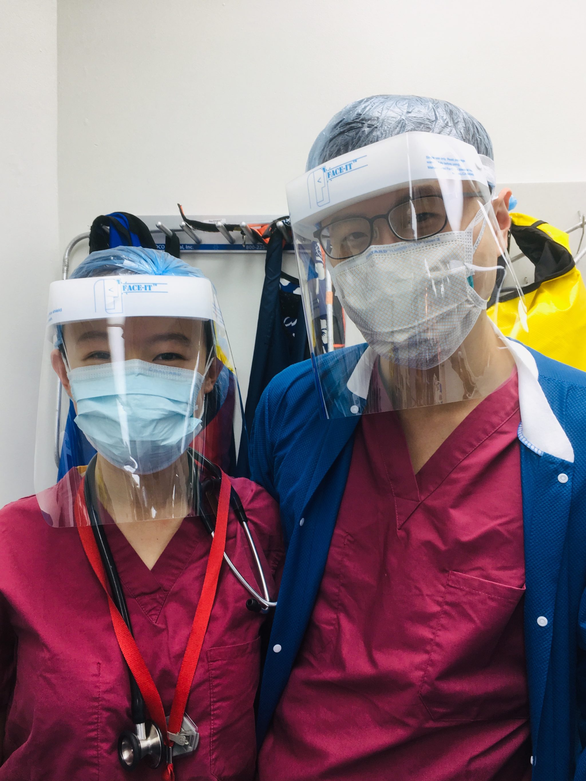 Drs. Zhu and Lee are resident physicians at the New York Presbyterian Columbia University Medical Center in the department of anesthesiology—they met in orientation and say it was love at first sight. They’d been dating for two years before the pandemic hit, at which time, they say, they began working on the hospital’s emergency airway team, where they were “repeatedly called to the ED for emergency intubations,” and then in the ICU where they managed Covid-19 patients.
