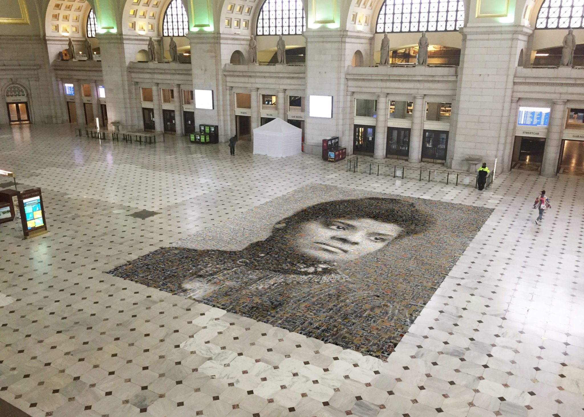 A 1,000-square-foot mosaic of civil rights leader, suffragist, and anti-lynching advocate Ida B. Wells will be at Union Station starting Monday, August 24. The art installation, “Our Story: Portraits of Change Mosaic of Ida B. Wells,” features tiles illustrating 5,000 historic photographs that altogether depict a portrait of Wells. The piece, created by British artist Helen Marshall and produced by Purpose Entertainment, was commissioned by the Women’s Suffrage Centennial Commission to commemorate the 100th anniversary of the 19th Amendment, which was certified into the US Constitution on August 26, 1920—the date that is now celebrated as Women’s Equality Day.