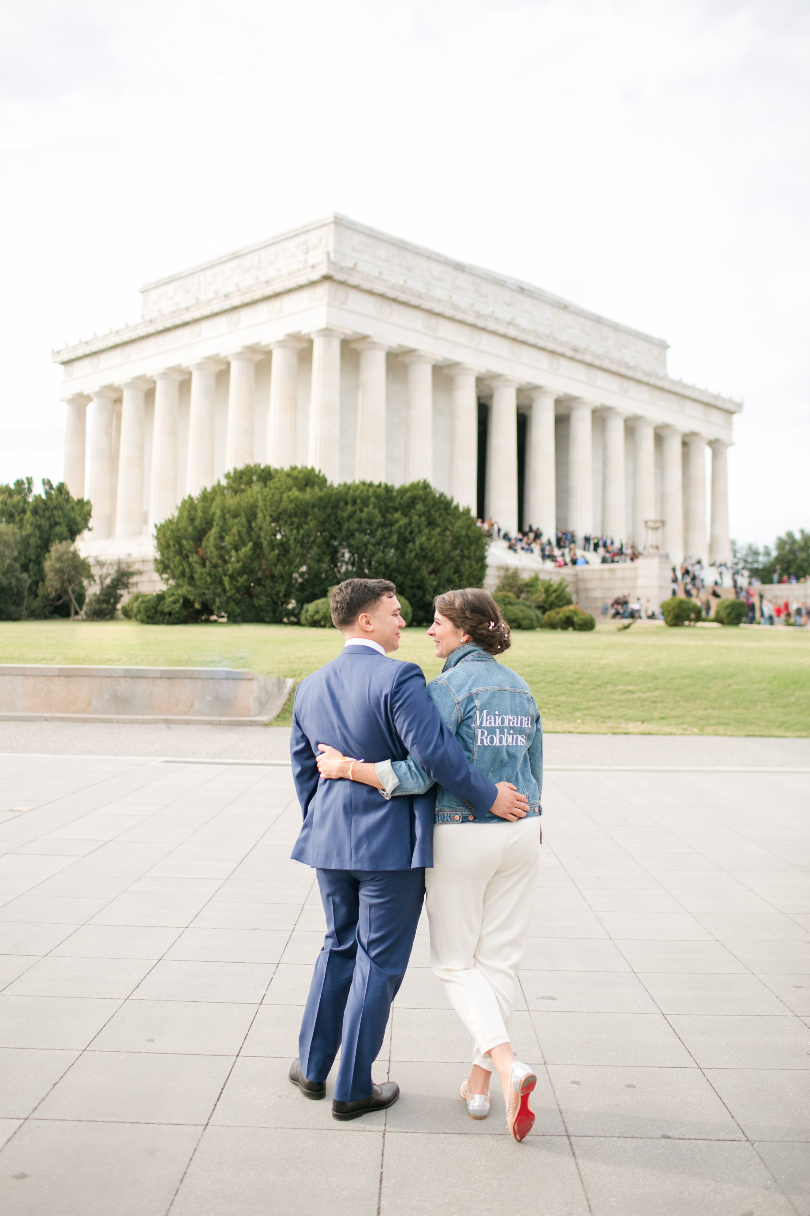 “The wedding dress was an unintended splurge,” says Katherine. Adding that she really wanted to find a jumpsuit and then have a detachable skirt made to wear for the ceremony. However, she had trouble finding the perfect jumpsuit and decided to create a custom jumpsuit with a skirt instead. She worked with her designer, Modern Trousseau to create the ultimate look and even paired the jumpsuit with a ultra-cool jean jacket to add some fun to her reception attire.