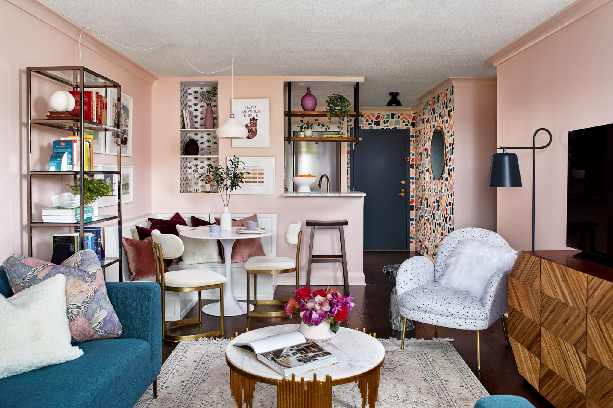 The 700-square-foot Georgetown apartment used to be so dreary that practically every paint sample showed up the color of a rain cloud. “Blue looked gray, pink looked gray,” says its owner, Karine Shebaclo. “Every time we brought in a color, we were like, ‘Why does it look gray?’ ”