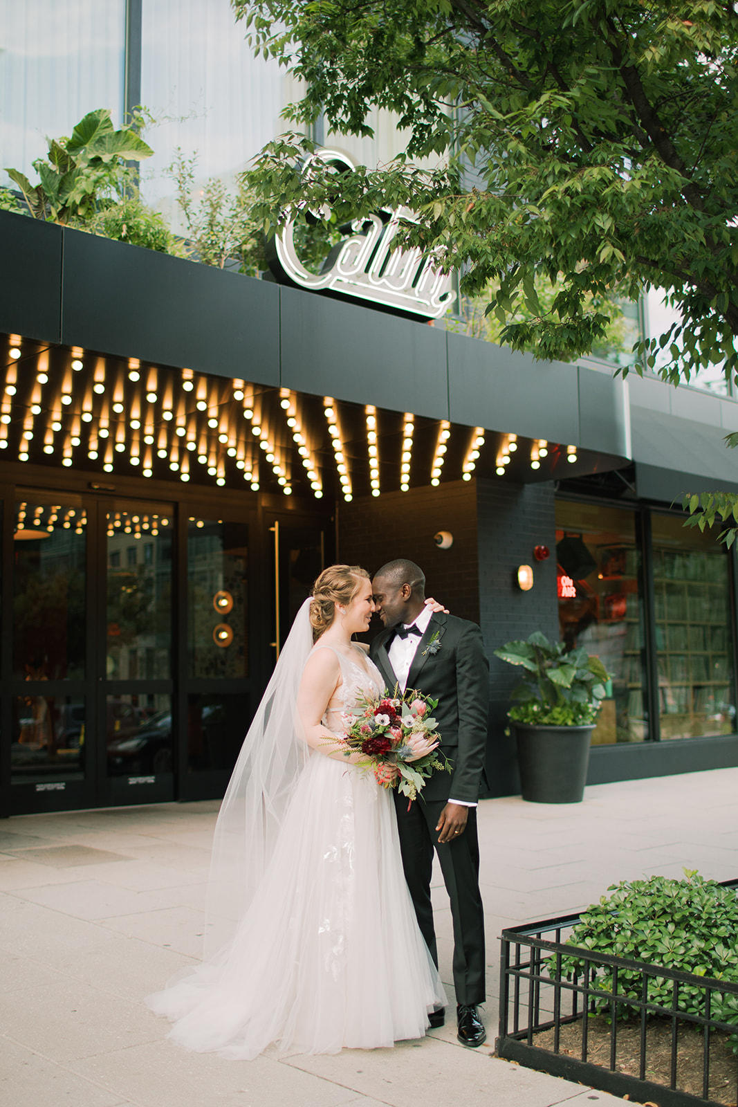 Katie and Nfally’s wedding is a great source of inspiration for those who are planning to marry in downtown DC and expecting a lot of out-of-town guests. The couple, who met and live in Dallas, decided to marry in DC because it was not only an easy destination for their families to travel to, but because they fell in love with their modern hotel venue, Eaton DC. The destination was an added bonus for the bride, because she’d lived in the city for some time before meeting Nfally. As for Nfally, he grew up in The Gambia, and DC proved to be an easy flight for his international relatives.