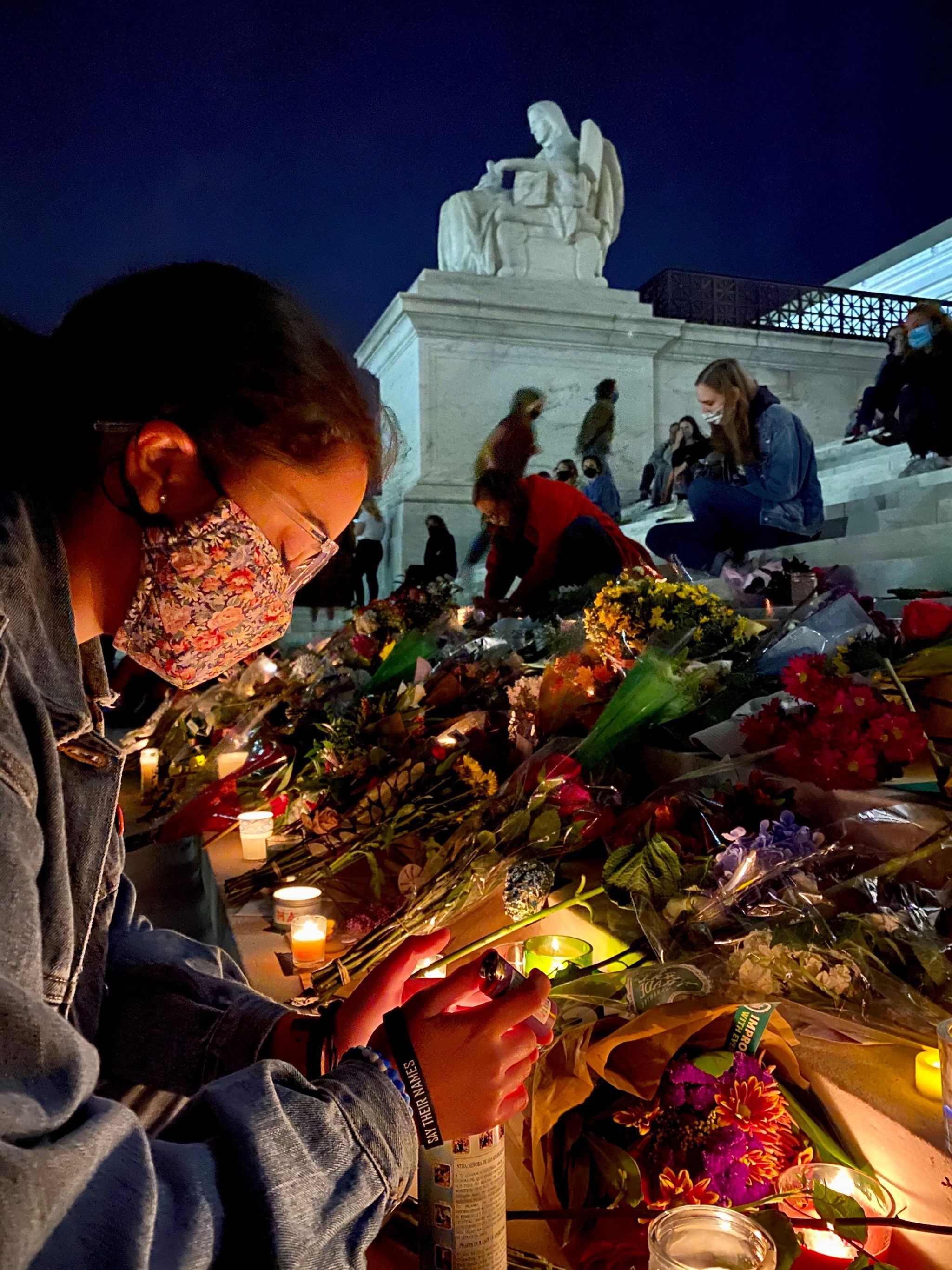 Hundreds of mourners gathered on the steps of the Supreme Court Friday night to grieve the death of Justice Ruth Bader Ginsburg, hours after the high court announced her death. Crowds placed flowers, candles, and signs in tribute to the late justice, sometimes joining in song. The flags outside of the Supreme Court have been lowered to half-mast.