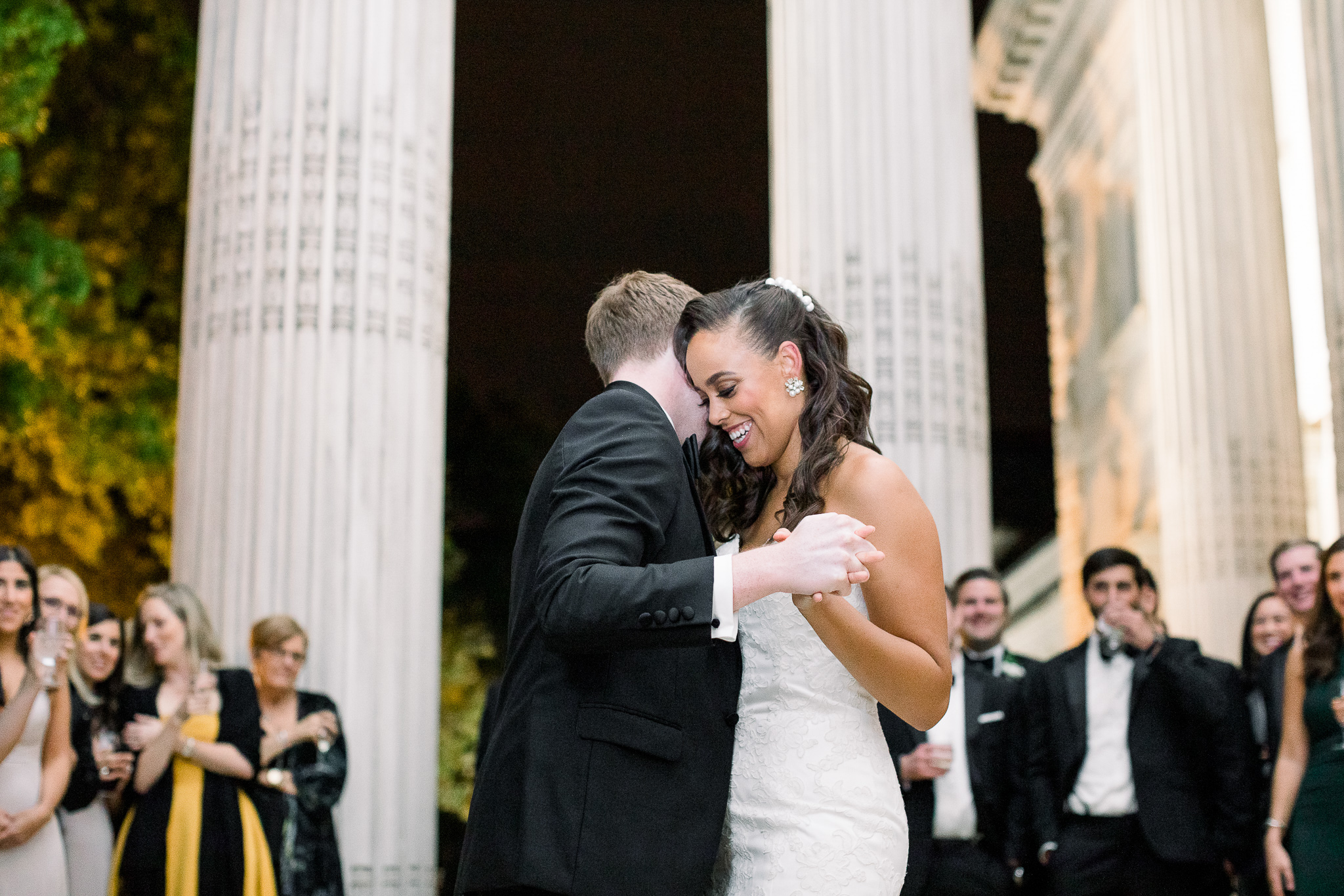 As for the groom, he says his favorite part was at the end, when “with the best night of [my] life slipping away, everyone got together under the columns of the DAR portico for one last dance.” The song? The Killers “All These Things That I’ve Done.”
