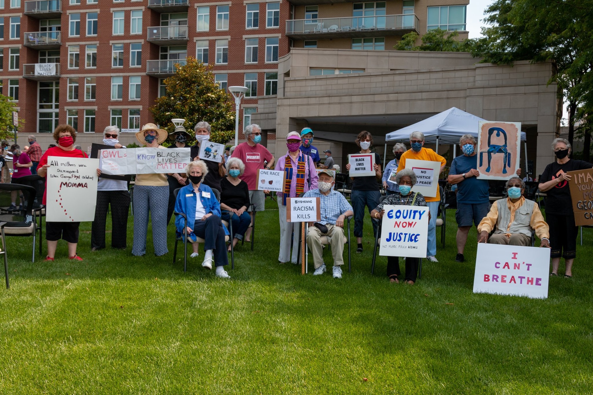 On the afternoon of June 9, nearly 250 residents and staff gathered on the front lawn of Goodwin House, a senior-living community in Falls Church. Most residents stood, while some required chairs, their canes or walkers close at hand. Almost all held homemade signs bearing messages such as systemic racism kills and i can’t breathe and black lives matter.