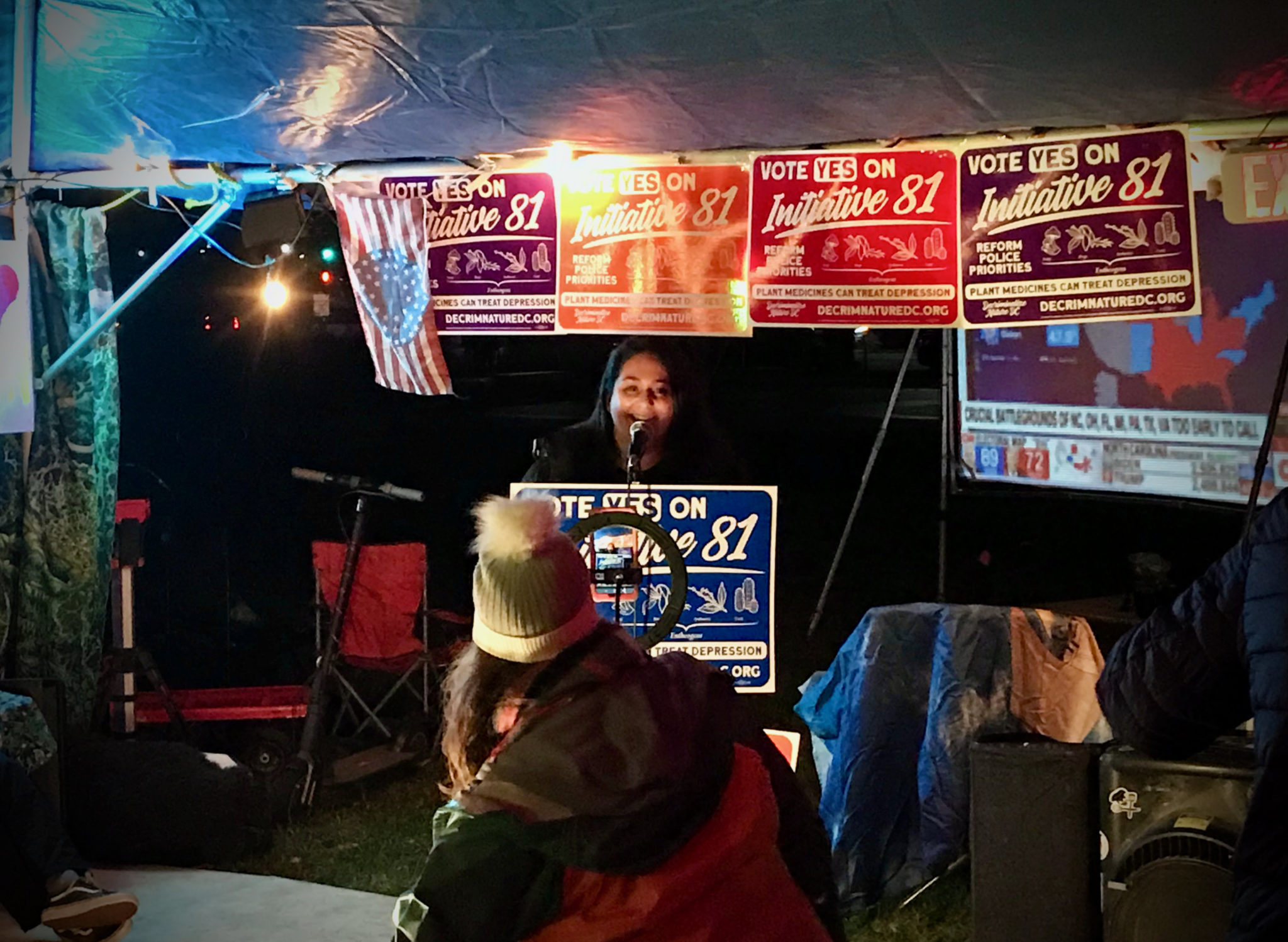 Speaking Tuesday night in a tent erected on the Washington Monument grounds by a group that holds a series of installations known as Catharsis on the Mall, Lavasani mentioned mental health and healing repeatedly as she celebrated the win, known as Initiative 81. “We’ve just made history tonight,” she said. “A lot of people are watching this win tonight and their eyes are open to the possibilities of natural medicine.”