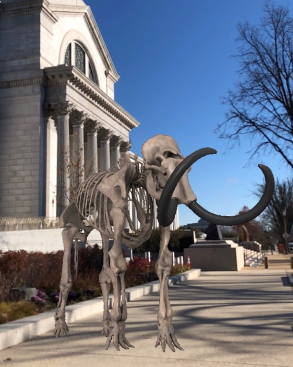 The handful of items includes a green hat by milliner Vanilla Beane from the National Museum of African American History & Culture and a skeletal mammoth courtesy of the National Museum of Natural History. Using AR, viewers get an intimate look at objects like the elaborate “Cosmic Buddha” of the National Museum of Asian Art’s collection, which features detailed Buddhist scenes you might not catch in person. Platform boots from The Wiz actually dance in front of you.